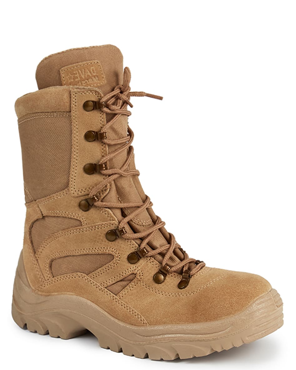 Ботинки с высокими берцами, облегченные. Данная модель создана для активного отдыха, силовых и охранных структур, любителей стиля милитари. Ботинки обладают характеристиками армейской обуви и удобством трекинговых кроссовок. Изготовлены из замши со вставками из особопрочной ткани типа кордура. Подкладка из современной многослойной синтетической влагопоглощающей ткани. Легкая, износоустойчивая подошва из вспененного полиуретана и вкладные стельки из "EVA" добавляют комфорта благодаря демпфирующим свойствам. Конструкция и материалы этой модели обеспечивают потребителю продолжительный срок комфортной эксплуатации. Данная модель адаптирована для применения в военно-патриотических организациях. Смотрите также статью про берцы