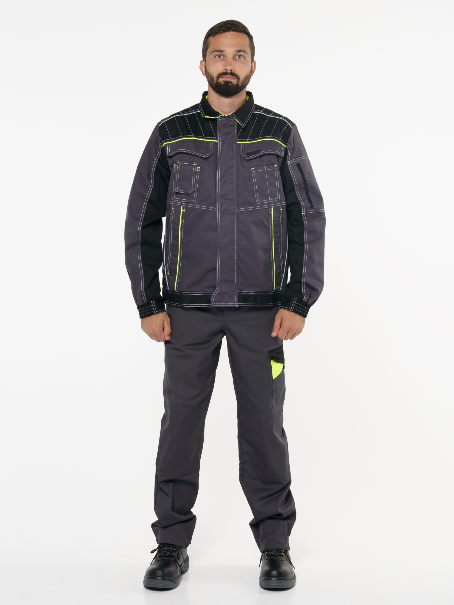 Брюки "ХОВАРД" : темно-серые с черной и лимонной отд. (ЧЗ) ( 88-92/182-188)