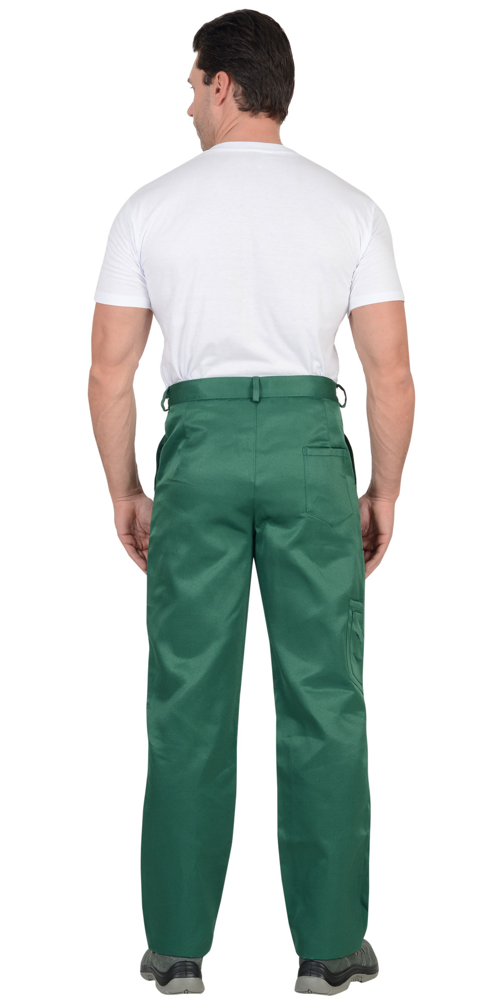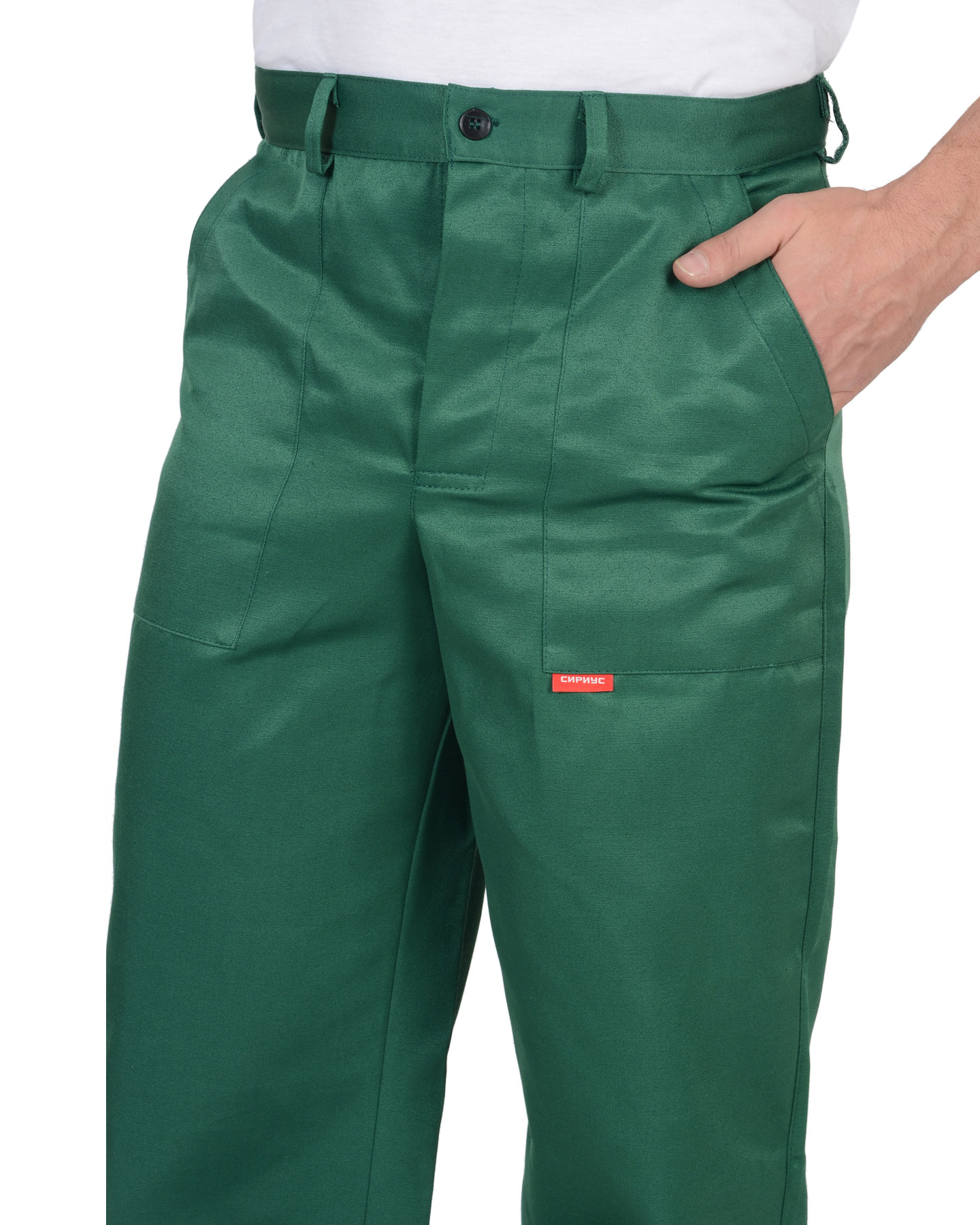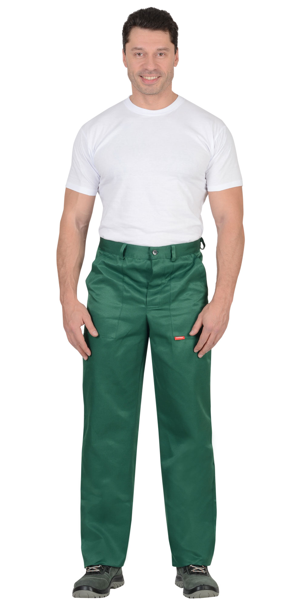 Брюки с заст.жкой спереди на 3 петли и 3пуговицы, с притачным поясом с 5 шлевками и заст.жкой на 1 петлю и пуговицу, с накладными боковыми карманами с наклонным входом, с накладным фигурным карманом и двумя (расположенными один на другом) накладными фигурными кармашками для инструментов на правой задней половинке. На маленьком кармашке 2 наклонные петли.ГОСТ 12.4.280-2014