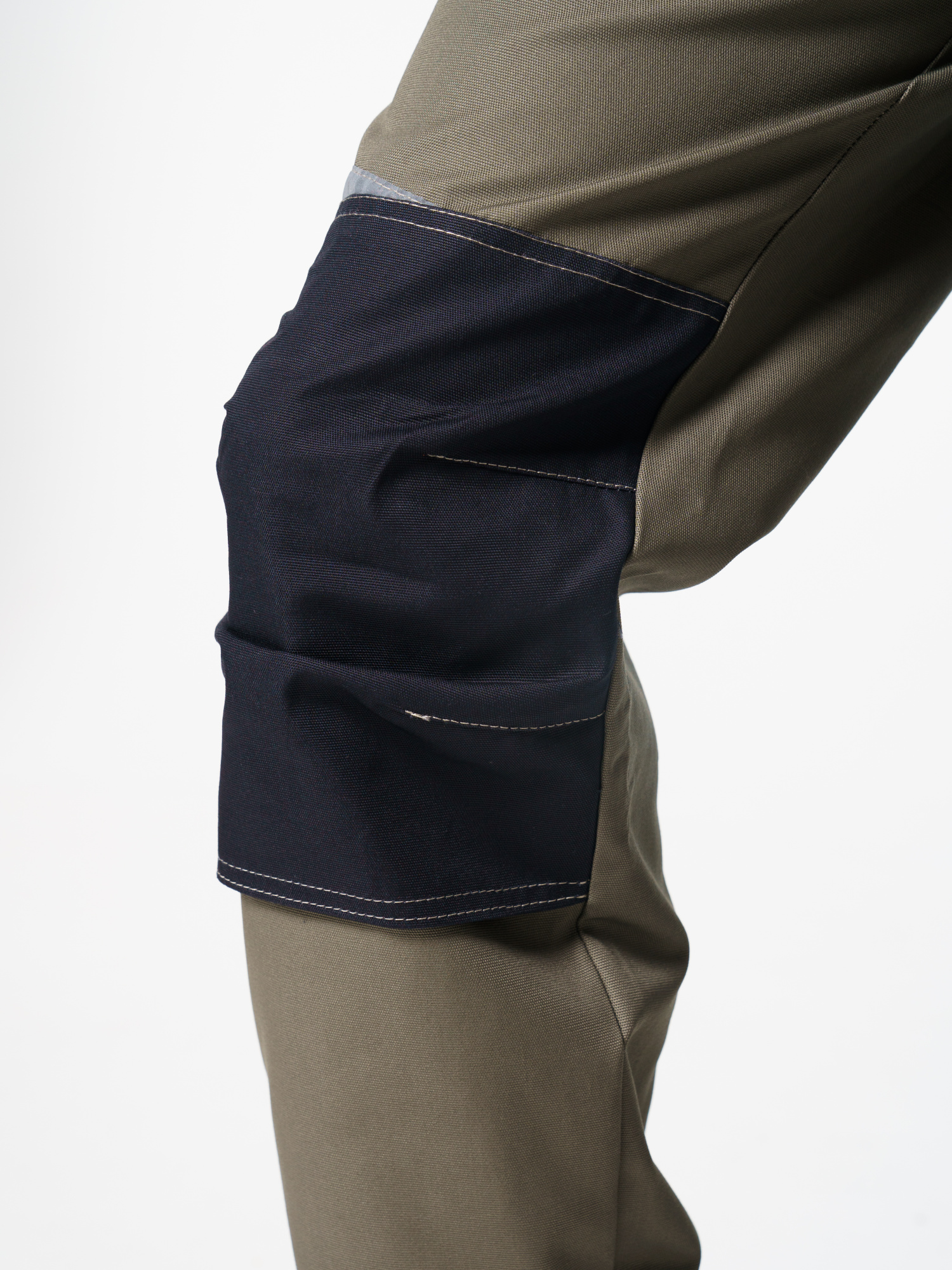 Брюки ФАВОРИТ-МЕГА прямые; с застёжкой гульфика на тесьму - «молния»; с застежкой пояса на одну петлю и пуговицу; с боковыми внутренними карманами; с карманами и фигурными клапанами застегивающиеся на потайную липучку на боковом шве; с фигурным карманом на задней половинке; с карманами под инструменты; с наколенниками. Пояс брюк частично стянут резинкой ткацкой по бокам. В брюках предусмотрена лента светоотражающая (мелкодисперсная белая) 50 мм фигурной формы.