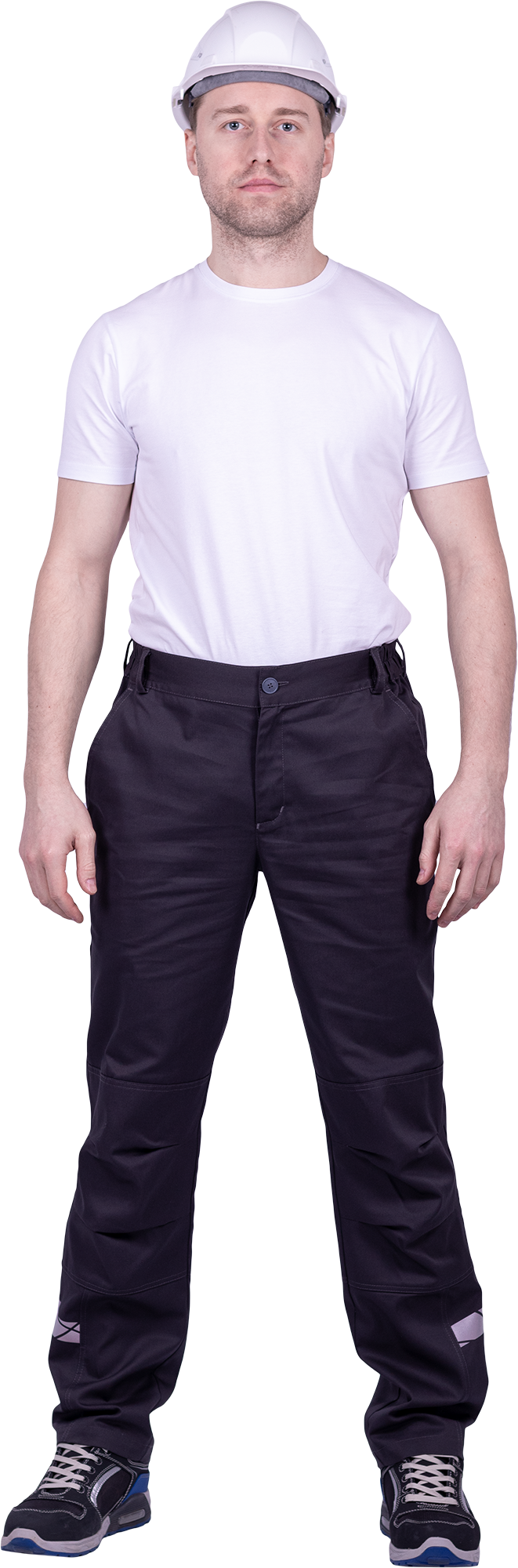• горизонтальная термоклеевая световозвращающая полоса шириной 30 мм располагается по низу брюк в области боковых швов.