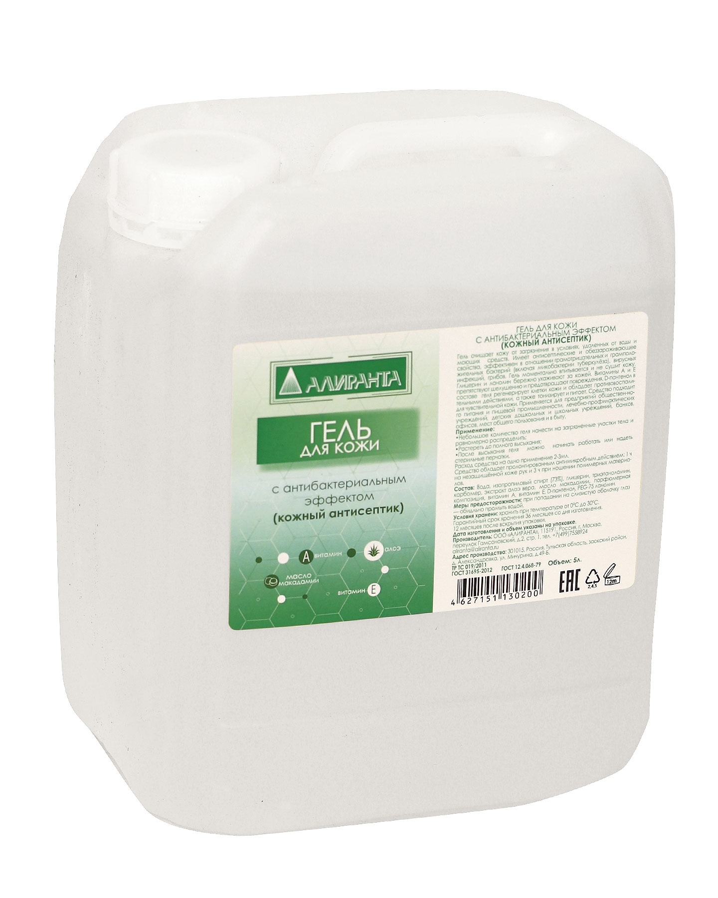 Гель антибактерицидный "АЛИРАНТА", канистра 5000мл
