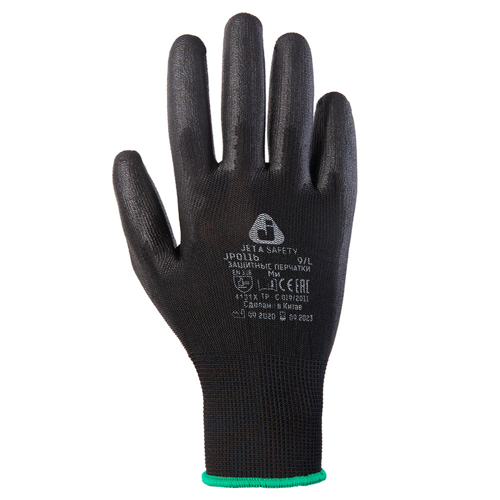 JP011b Защитные перчатки из полиэстеровой пряжи с полиуретановым покрытием, цв. черн (XL)