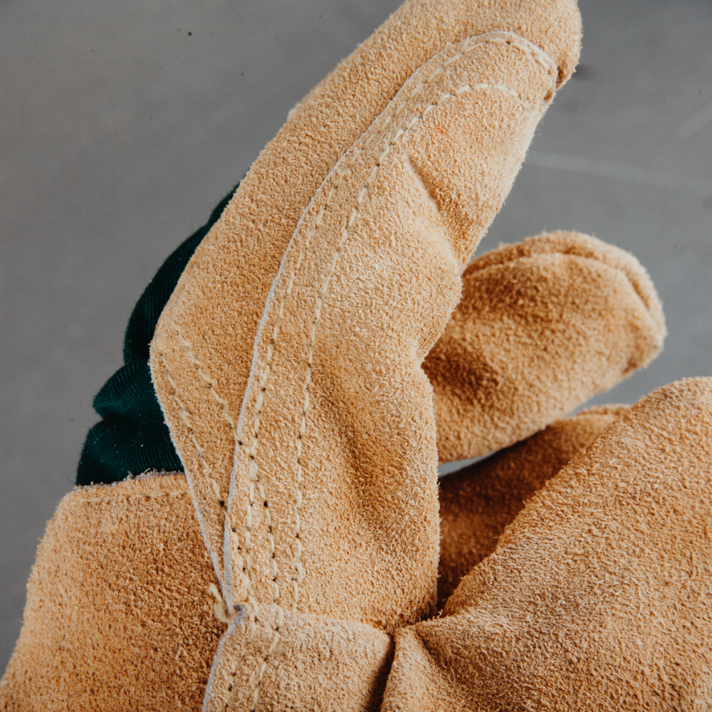 Накладка из спилка на тыльной стороне перчатки для усиленной защиты;