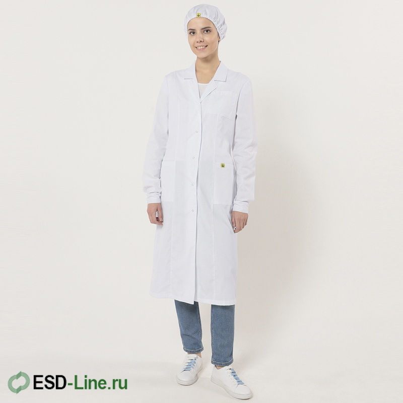 Основное назначение антистатического халата - это использование в качестве основного средства заземления персонала, для предотвращения повреждения чувствительных к электростатическим разрядам электронных компонентов и модулей, при работе в зонах, защищенных от электростатических разрядов (ESD защищенных зонах).