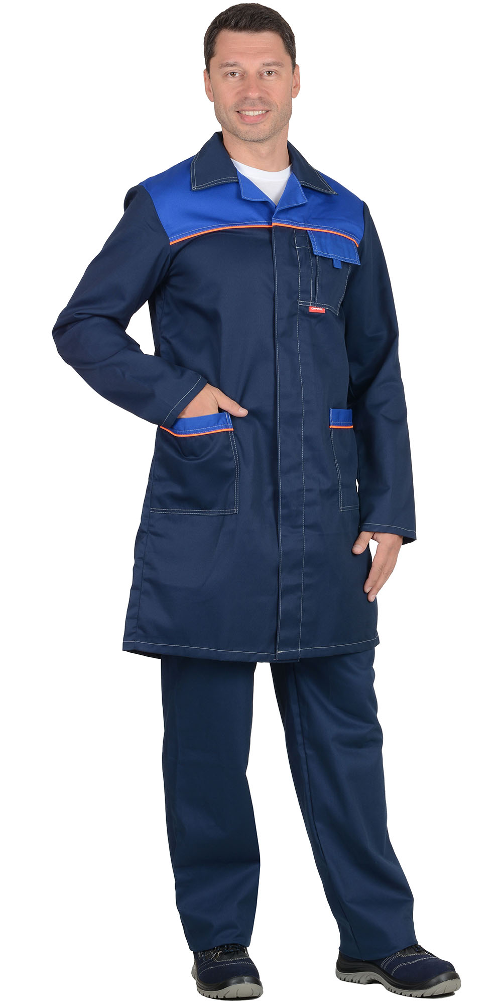 Халат "ФАВОРИТ" мужской тёмно-синий с васильковым