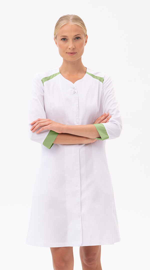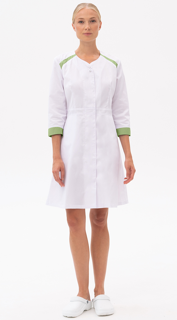 Халат МИРАЖ белый/зеленый тк. Оптима Хал 857 (ЧЗ) (112-116/158-164)