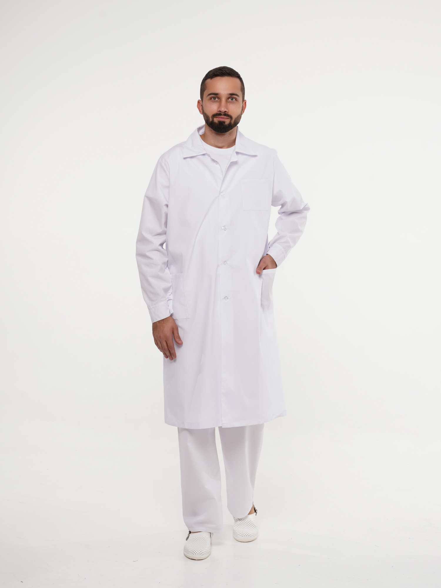 Халат рабочий мужской №202 отбеленный, ткань ТИСИ (ЧЗ) (112-116/182-188)