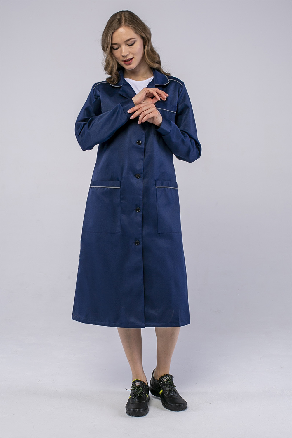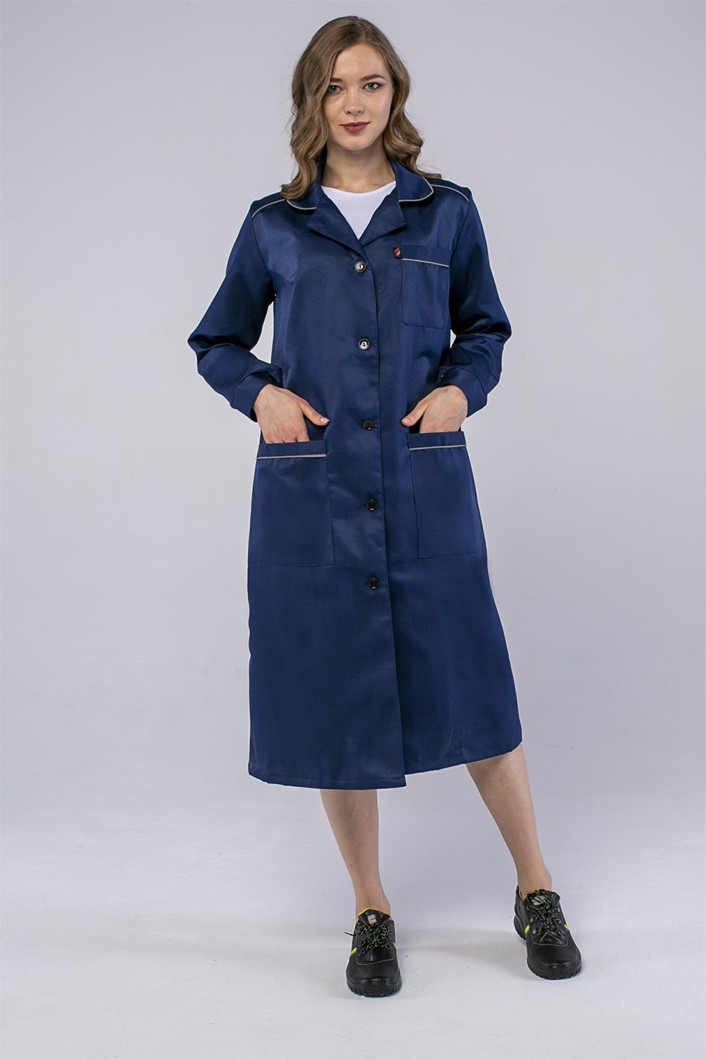 Халат женский ИТР (тк.Смесовая,210), т.синий Факел (аналог Технолог) (112-116/158-164)