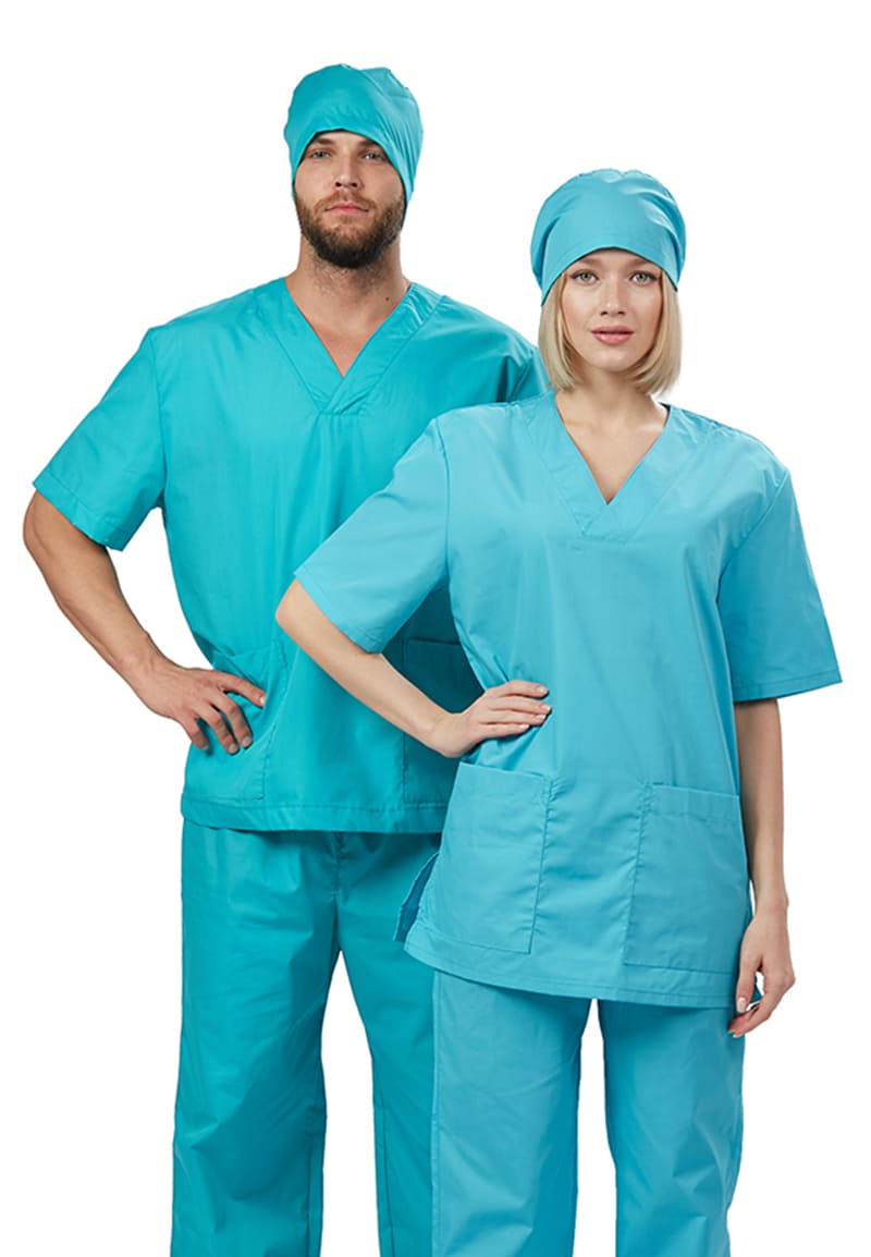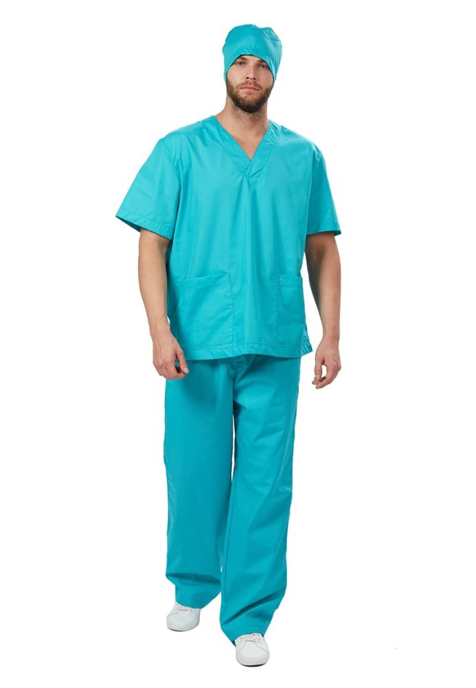 Хирургические костюмы (костюмы хирурга) — это универсальные медицинские костюмы многоразового использования, применяемые в качестве спецодежды для хирургов и других медработников для двухсторонней защиты врача и пациента. Они обеспечивают как защиту медработника от крови, влаги и других загрязнений, так и гигиеничность в его работе, защиту пациента от инфицирования. Костюмы хирурга также отвечают повышенным требованиям к удобству, свободе движений и безопасности. Широкий размерный ряд продукции позволит без труда подобрать костюм правильно по фигуре, в соответствии со спецификой профессии и с учетом индивидуальных требований сотрудника. Костюм Хирургический (универсальный) прост в уходе, не мнется и быстро сохнет, а материал долгое время сохранит свой первоначальный яркий цвет. Костюм состоит из блузы, брюк и головного убора (колпак) бирюзового цвета. Костюм состоит из прочной смесовой ткани ТИСИ, отталкивающей различного рода загрязнения. Материал устойчив к пятнам и истиранию, тем самым медработники всегда будут выглядеть опрятно и привлекательно.