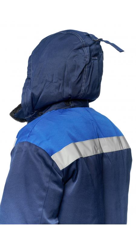Куртка с супатной застежкой на петли и пуговицы, с внутренней ветрозащитной планкой, воротник отложной, рукав втачной. Полочки с нагрудными и боковыми накладными карманами. Верхний воротник – меховой, застёгивающийся на паты с пуговицей и петлёй. Капюшон пристегивается к куртке на петли и пуговицы.