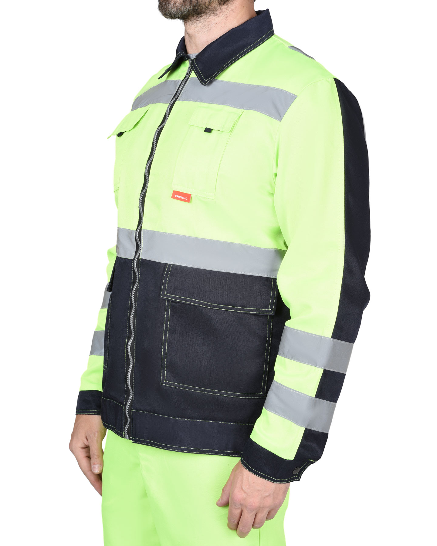 Костюм "МАГИСТРАЛЬ-ЛЮКС" : куртка, брюки неоновый с синим и СОП (ЧЗ) ( 96-100/170-176)