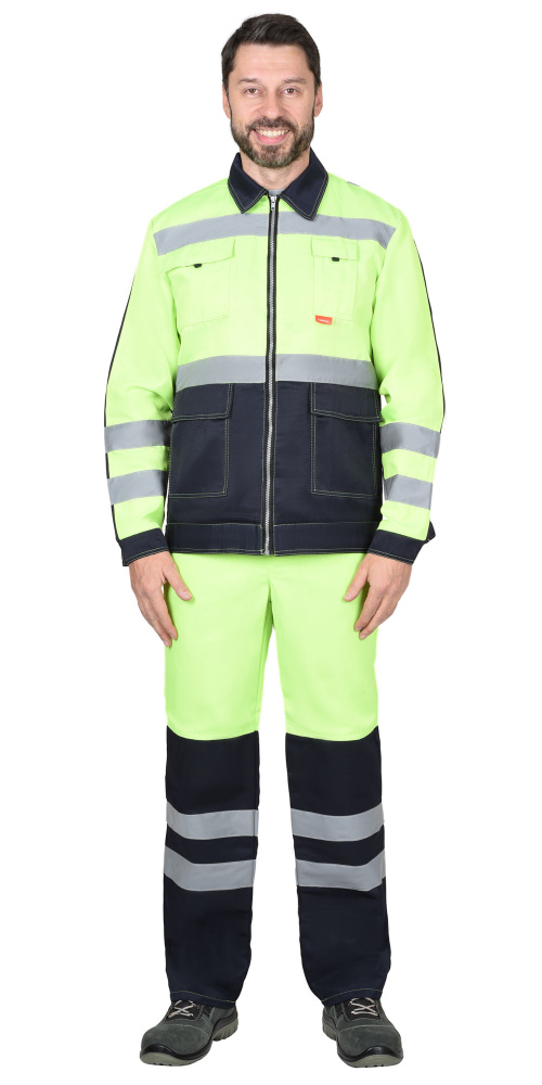 Костюм "МАГИСТРАЛЬ-ЛЮКС" : куртка, брюки неоновый с синим и СОП (ЧЗ) (104-108/182-188)