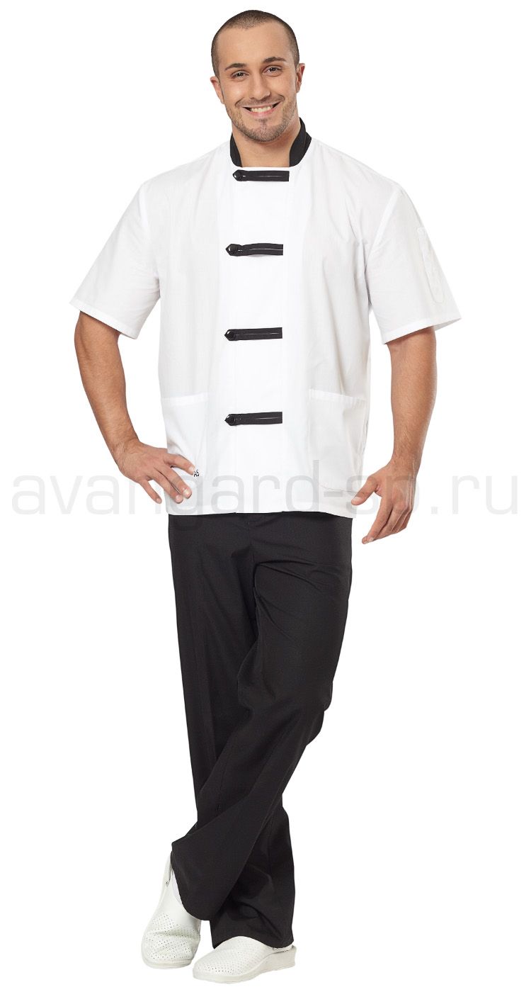 Костюм повара мужской "Азия" (цв. белый + черный) (ЧЗ) (120-124/170-176)