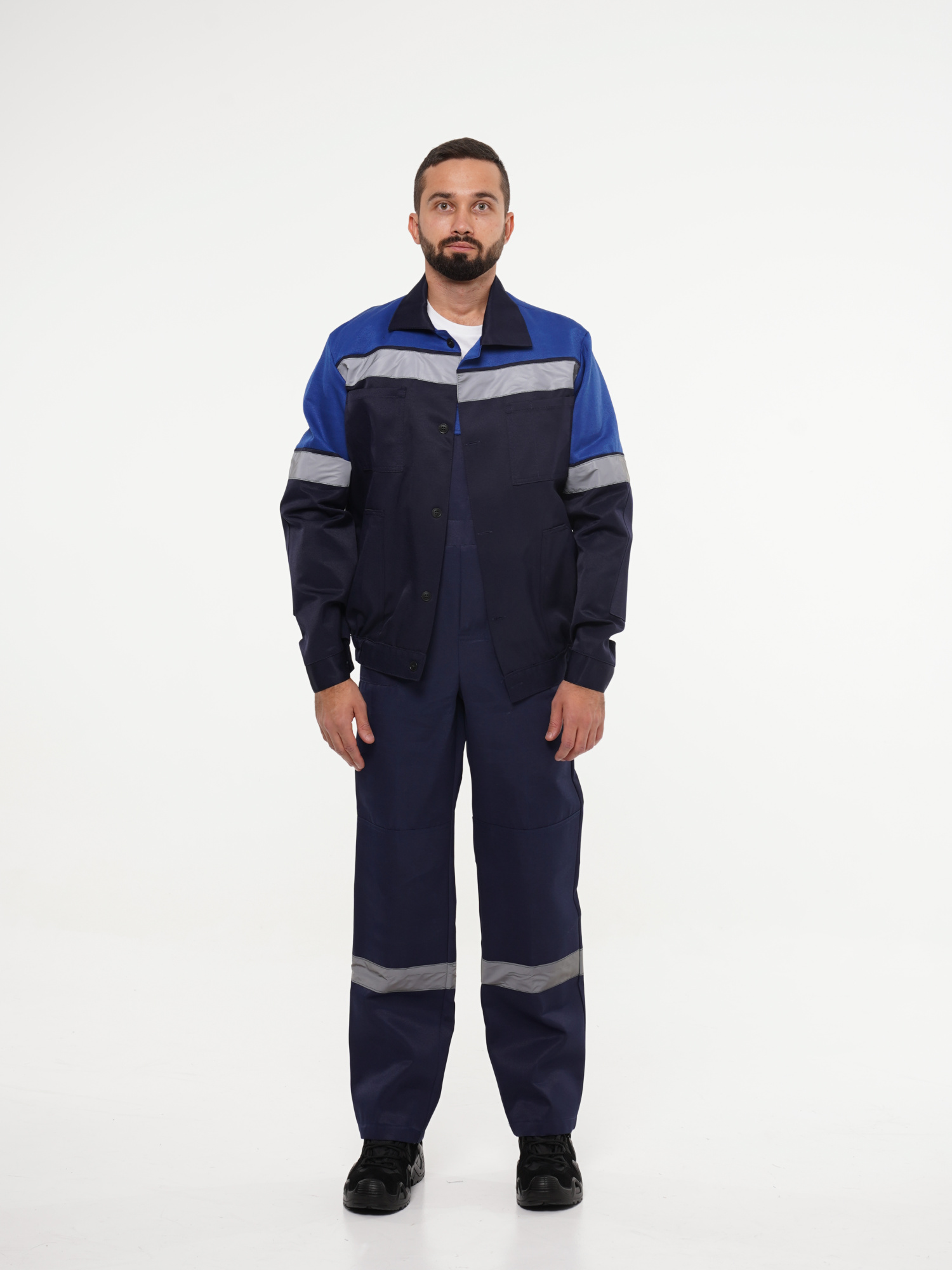 - куртка с полукомбинезоном - супатная застёжка на пуговицы - усиления в области локтей - СОП по кокеткам (спинки, полочки), рукава, полукомбинезон - гульфик на молнии