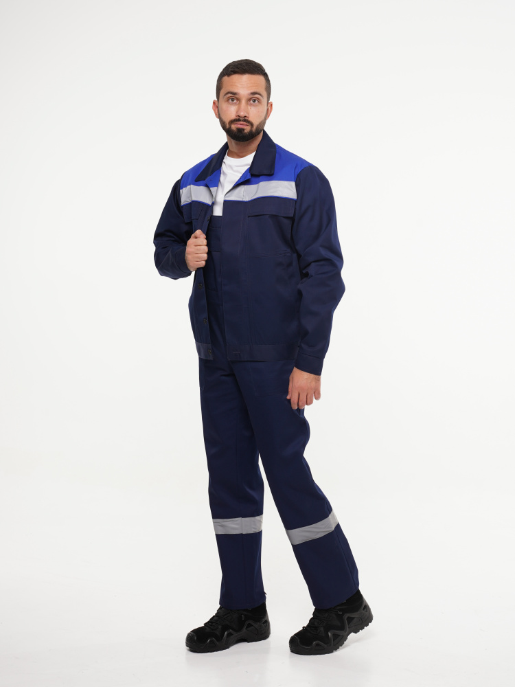 Костюм рабочий Сириус-Мастер №112 т.синий с васильковым (куртка, полукомбинезон) (ЧЗ) (128-132/158-164)