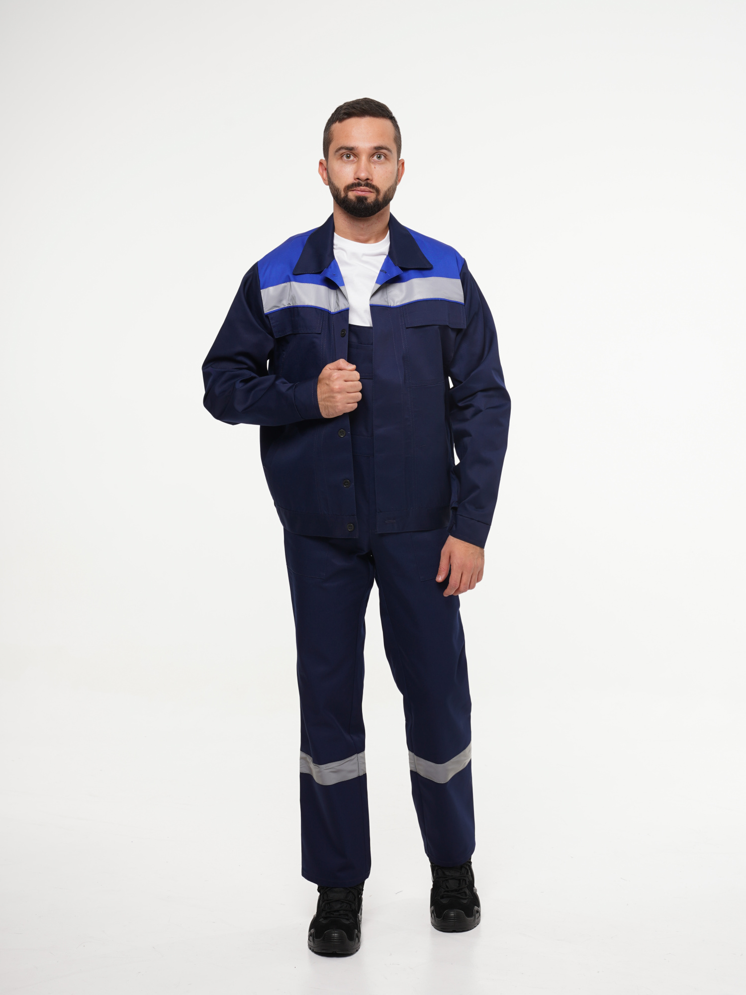 Костюм рабочий Сириус-Мастер №112 т.синий с васильковым (куртка, полукомбинезон) (ЧЗ) (112-116/158-164)