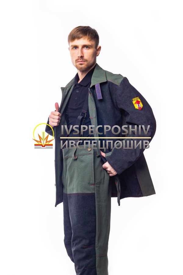 Куртка прямого силуэта с потайной центральной застежкой на 5 пуговиц. Форма рукавов соответствует основному положению рук сварщика при выполнении работ. Куртка имеет вентиляционные отверстия под проймами в боковом шве и по линии настрачивания кокетки.