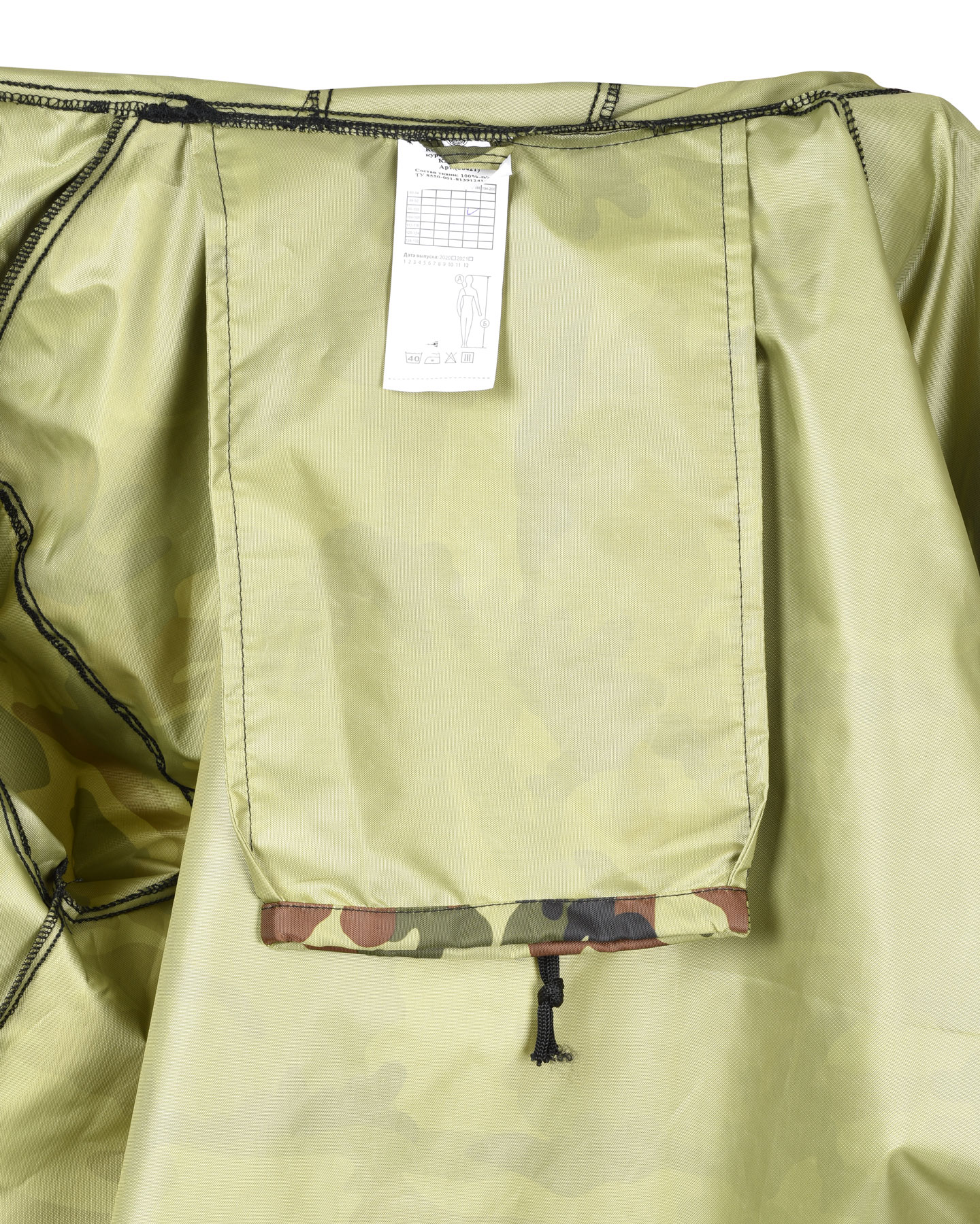 Тк. "Оксфорд", 100% п/э. Куртка с капюшоном со шнуром, застёжкой на "молнию", карманами, шнуром внизу. Пояс и низ брюк, низ рукавов с резинкой. ТУ 8550-001-81391241-2008.