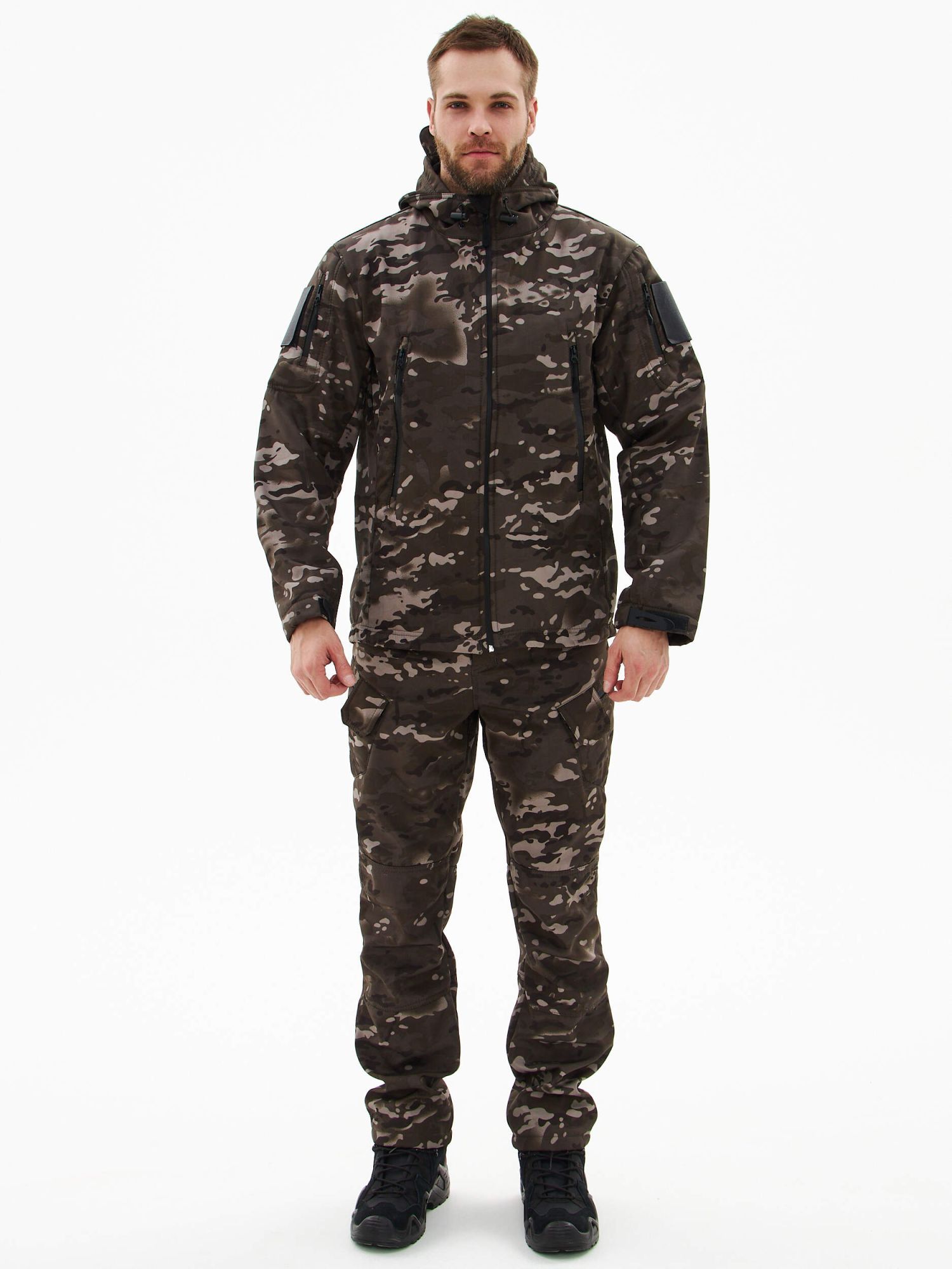 - прорезные карманы в рамку на рукавах со входом на молнию и ограничителями с двух сторон для замка, на кармане широкая липучка под шеврон;