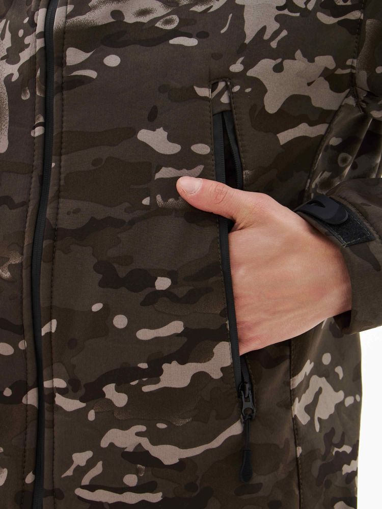 - прорезные карманы в рамку на рукавах со входом на молнию и ограничителями с двух сторон для замка, на кармане широкая липучка под шеврон;