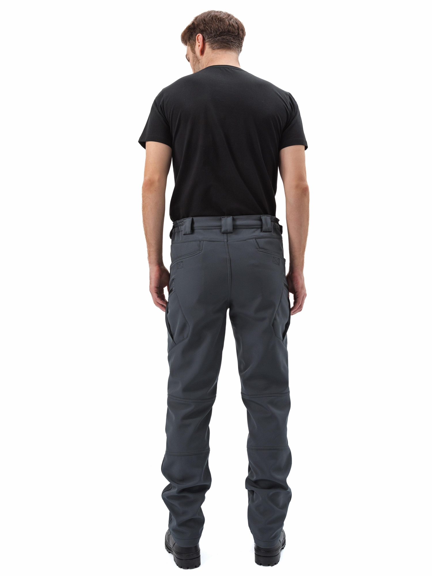 - задняя и передняя части брюк имеют эргономичный крой благодаря фигурными наколенникам со складками, подколенной вставкой и кокетки в области пояса;
