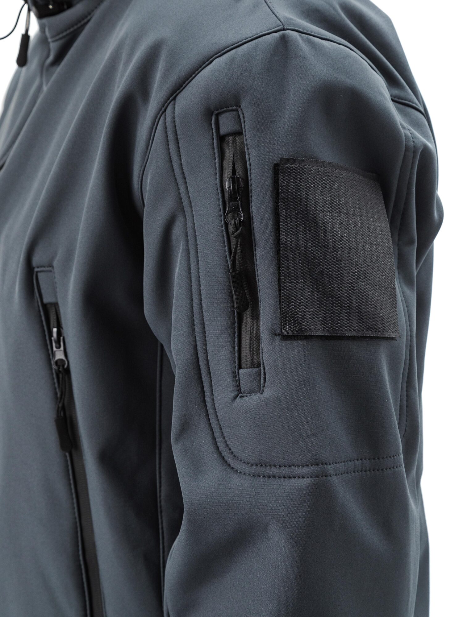 - прорезные карманы в рамку на рукавах со входом на молнию и ограничителями с двух сторон для замка, на кармане широкая липучка под шеврон;