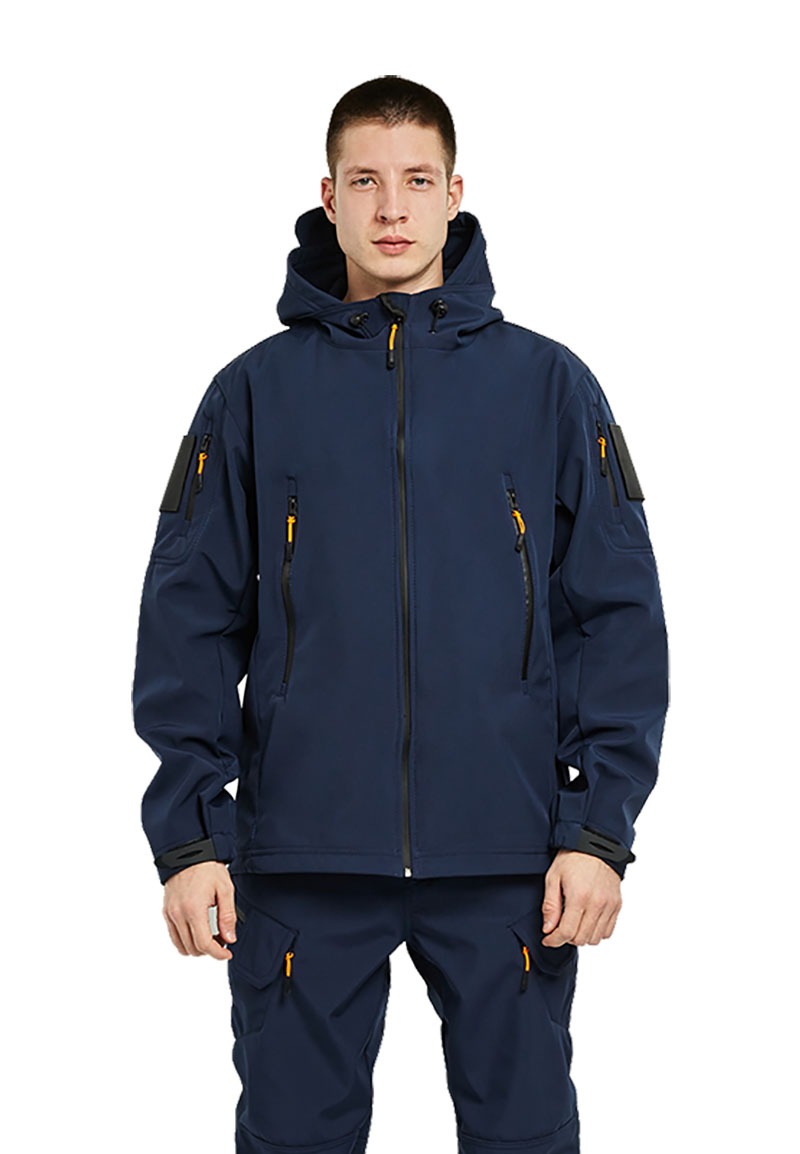 Универсальный мужской костюм состоит из куртки с капюшоном и брюк.