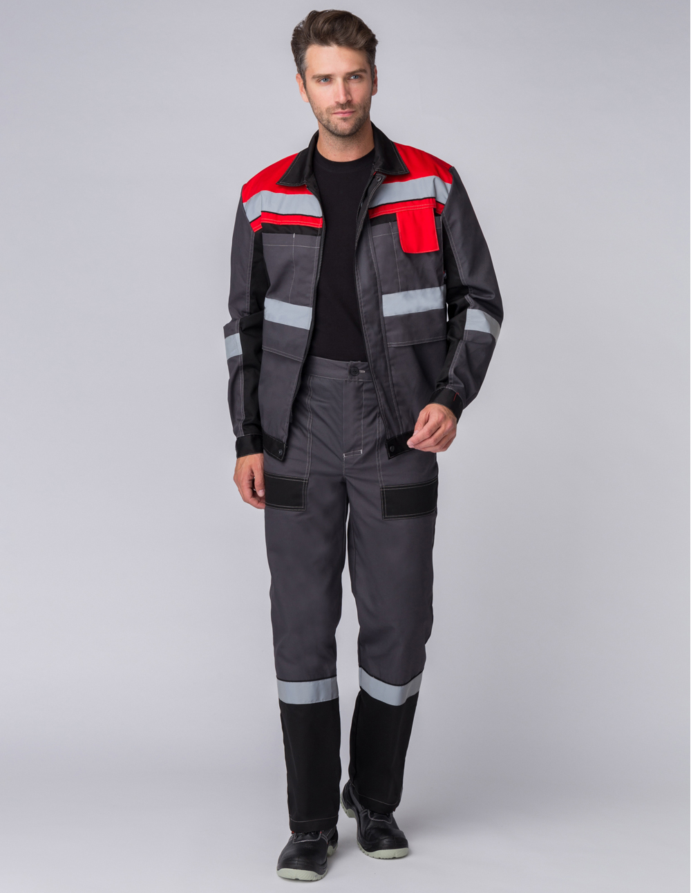 Костюм Виват-1 Премиум (тк.Смесовая,240) брюки, серый/черный/красный