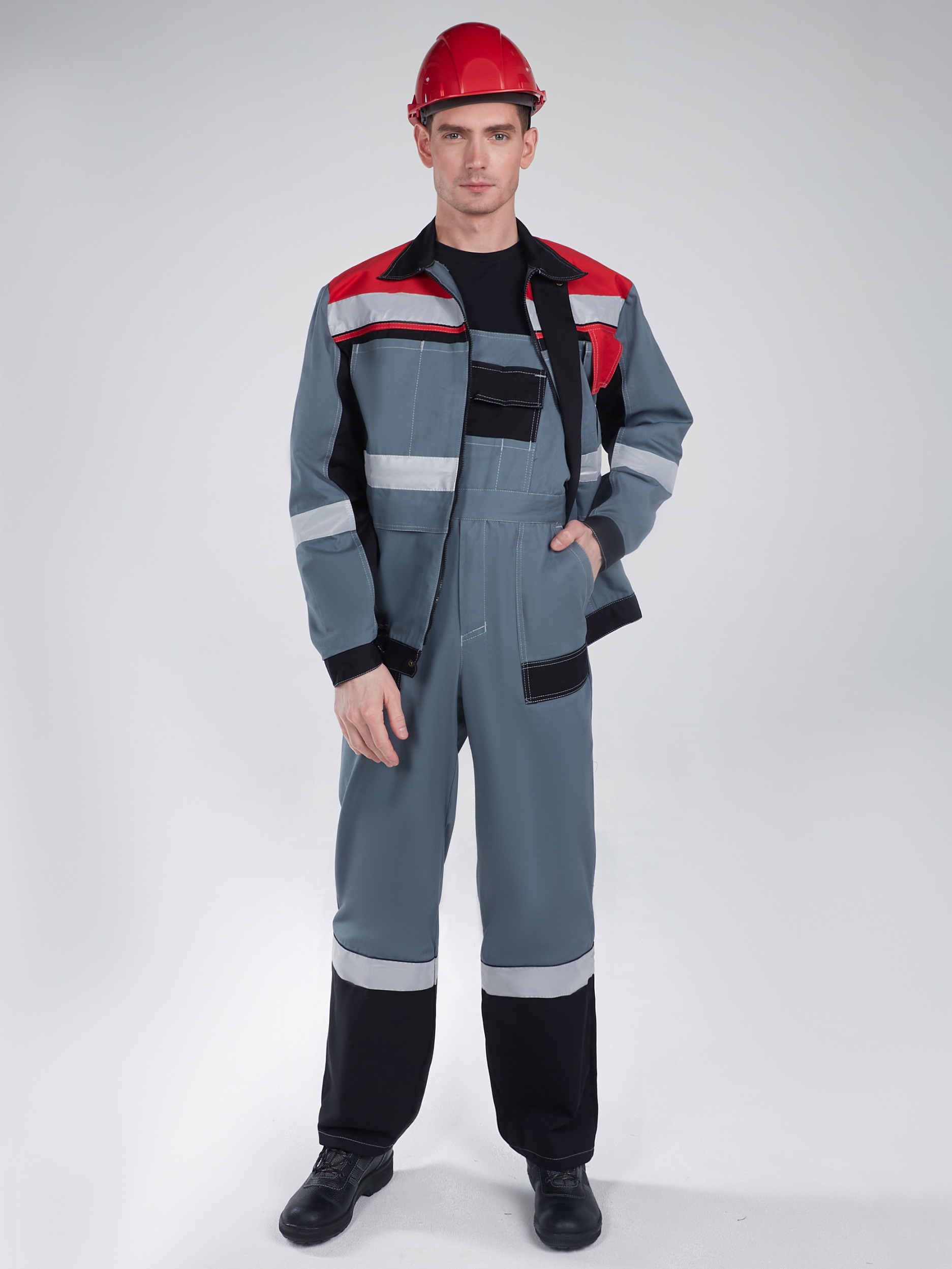- по кокеткам, полочкам, спинке, рукавам и брючинам расположены световозвращающие полосы, что позволяет использовать костюм в условиях плохой видимости