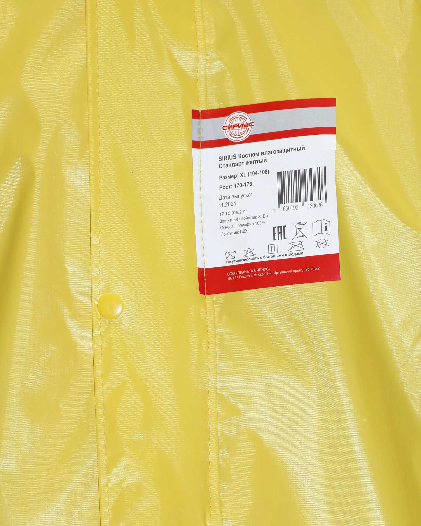 Костюм влагозащитный SIRIUS Стандарт (210 гр/м2) желтый (ЧЗ) (XL)