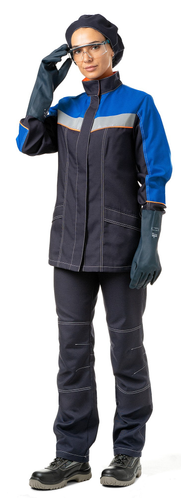 Ткань: 100% полиэфир, в т. ч. антистатическая нить; противокислотная, антистатическая, плотность 200 г/кв.м.