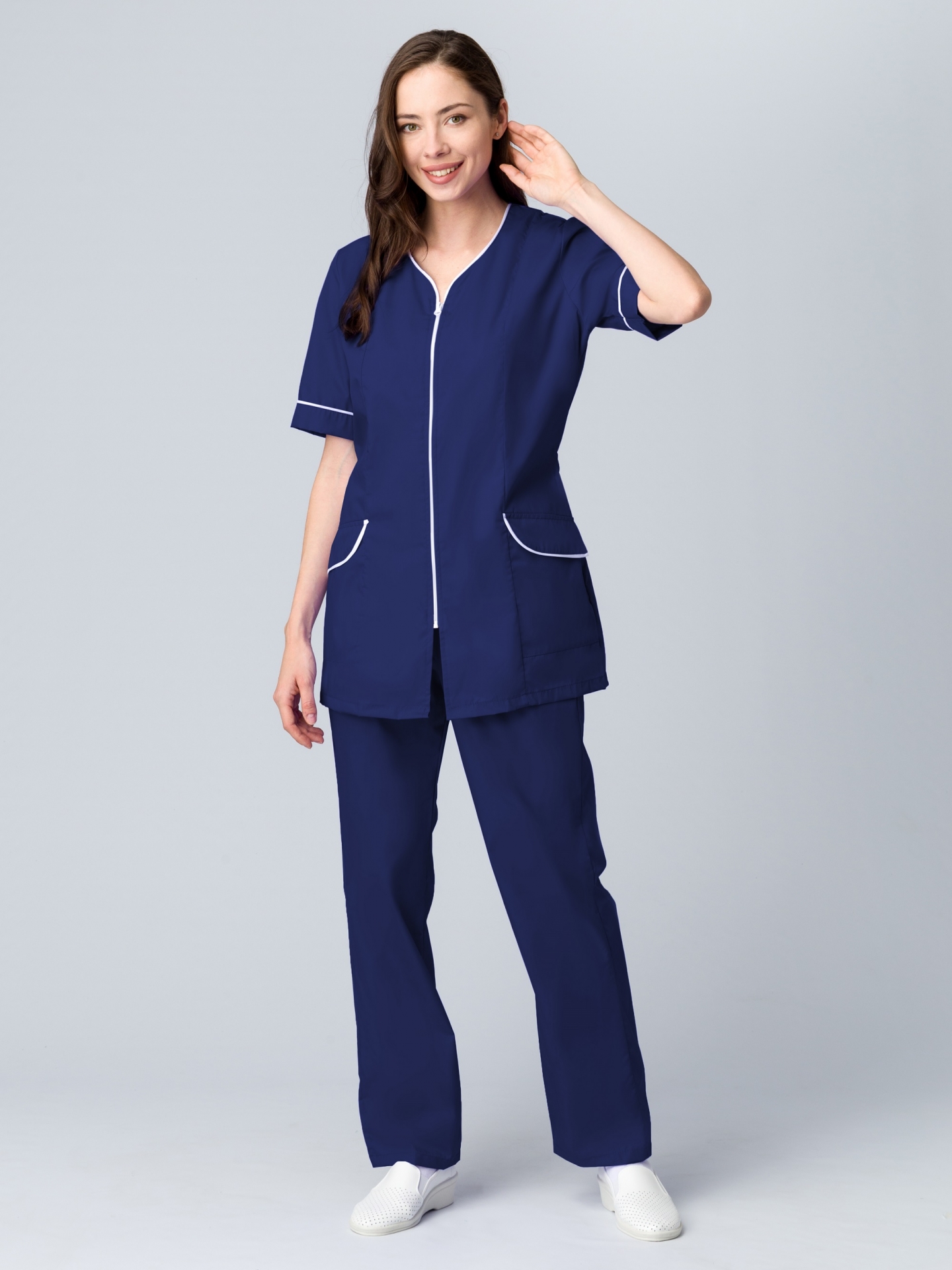 - атласным белым кантом отделаны клапаны карманов, горловина и рукава
