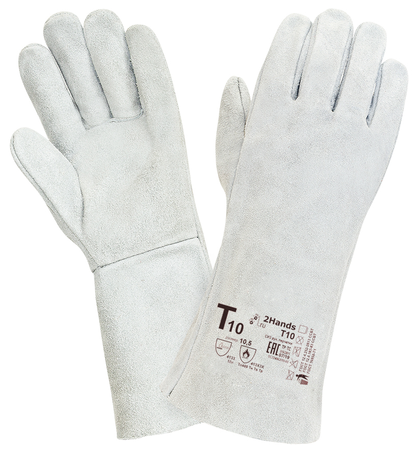Перчатки сварщика (краги) 2Hands (Ту Хэндс) спилковые для защиты от механических воздействий и повышенных температур. Перчатки пятипалые без подкладки. Спилок КРС сорта АВ (1,5 +/-0,2 мм), высокая толщина кожаного материала и обработка, обеспечивающая сохранение мягкости спилка в течение длительного времени хранения . Перчатки изготавливаются из высококачественного спилка спинной части шкур и прошедшего предварительный отбор.  Перчатки обеспечивают высокую механическую защиту, защиту от повышенных температур - открытого пламени, искр и брызг расплавленного металла. Размер 10,5.