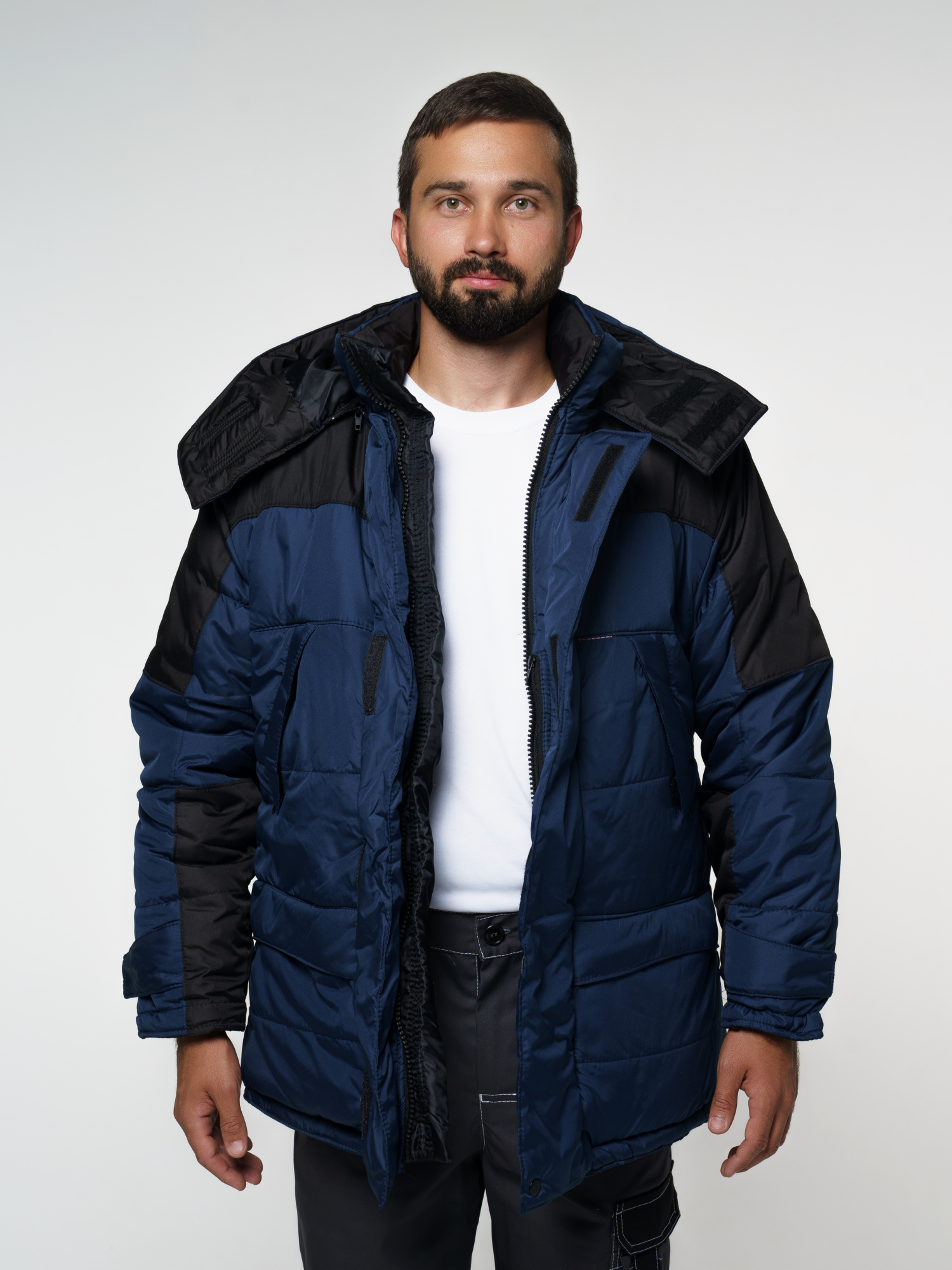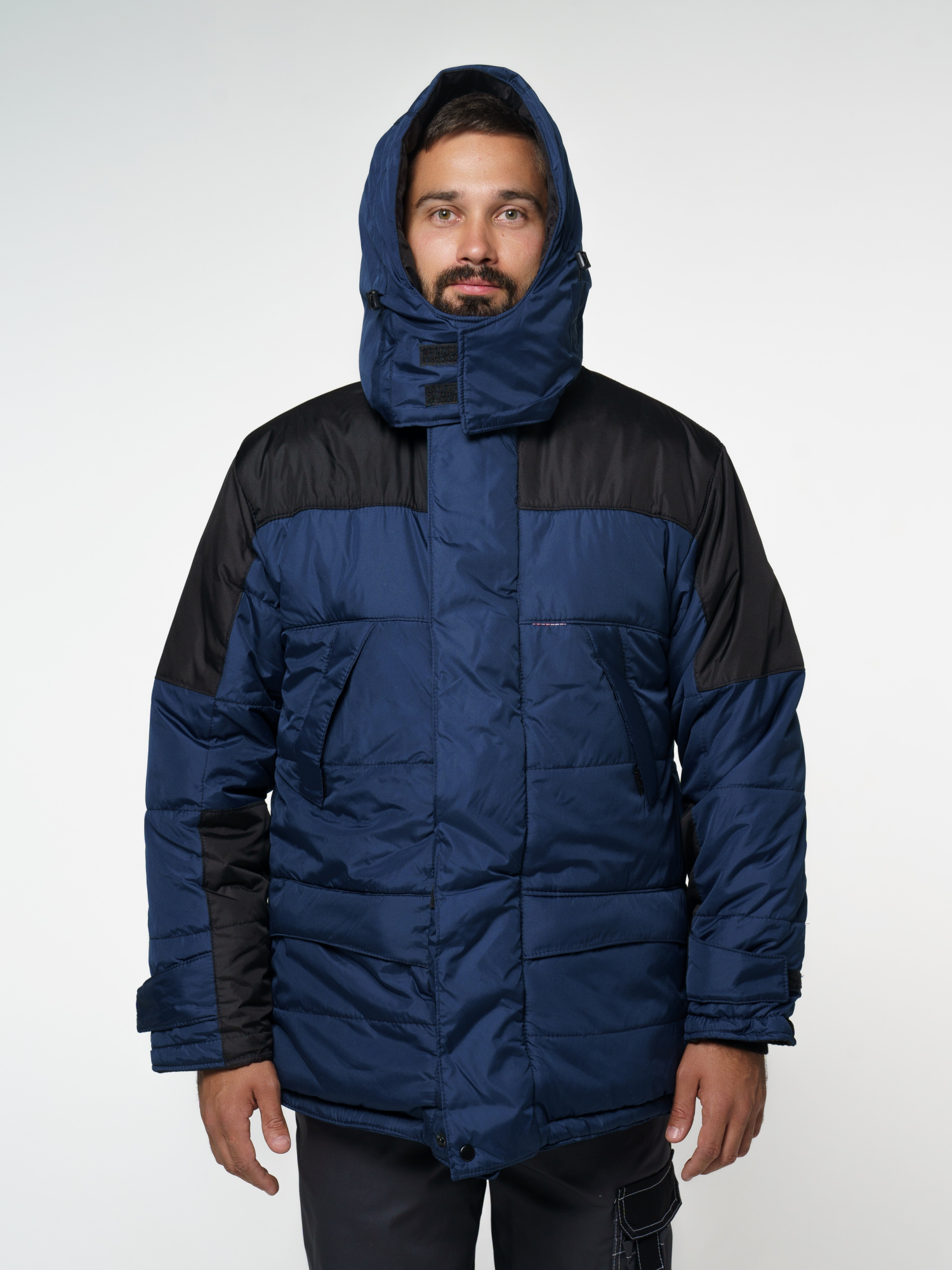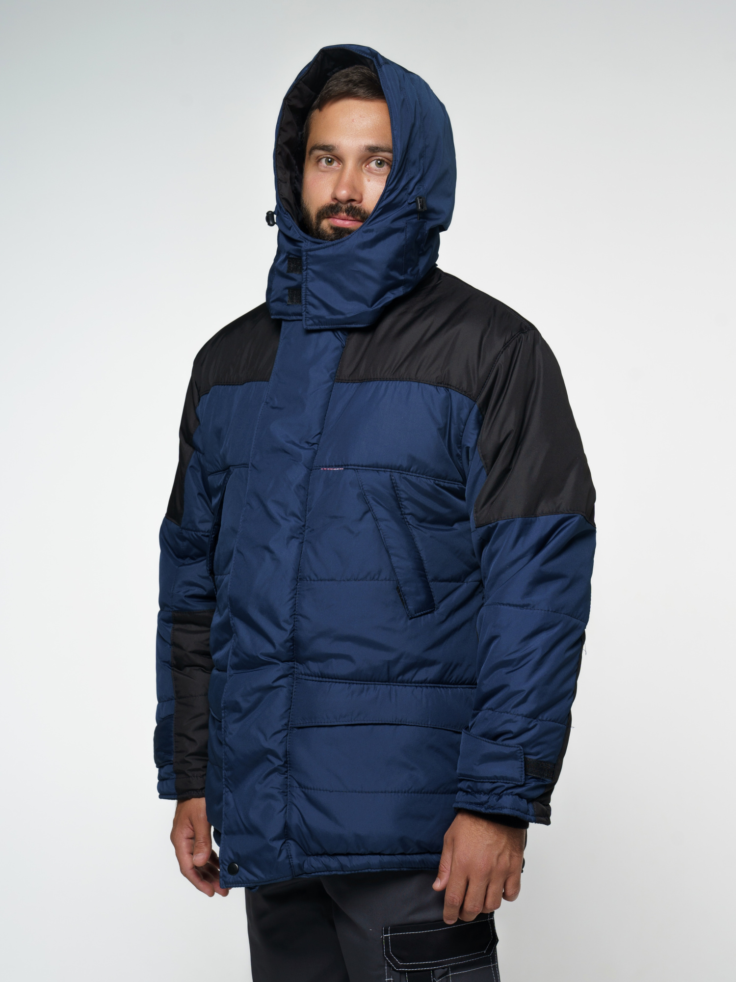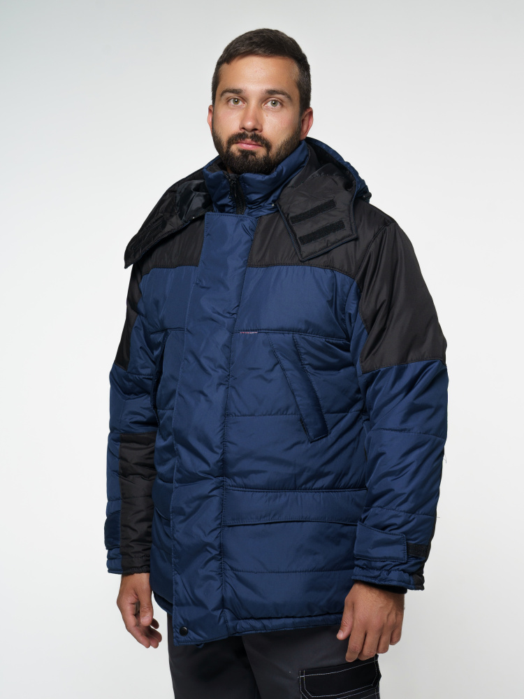 Куртка "ЕВРОПА" зимняя дл.,синяя с чёрным (ЧЗ) (104-108/182-188)