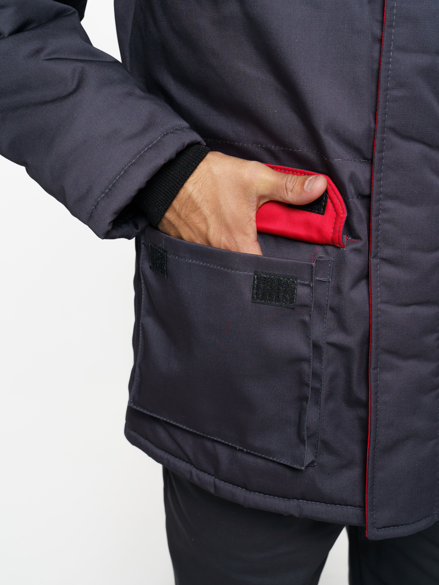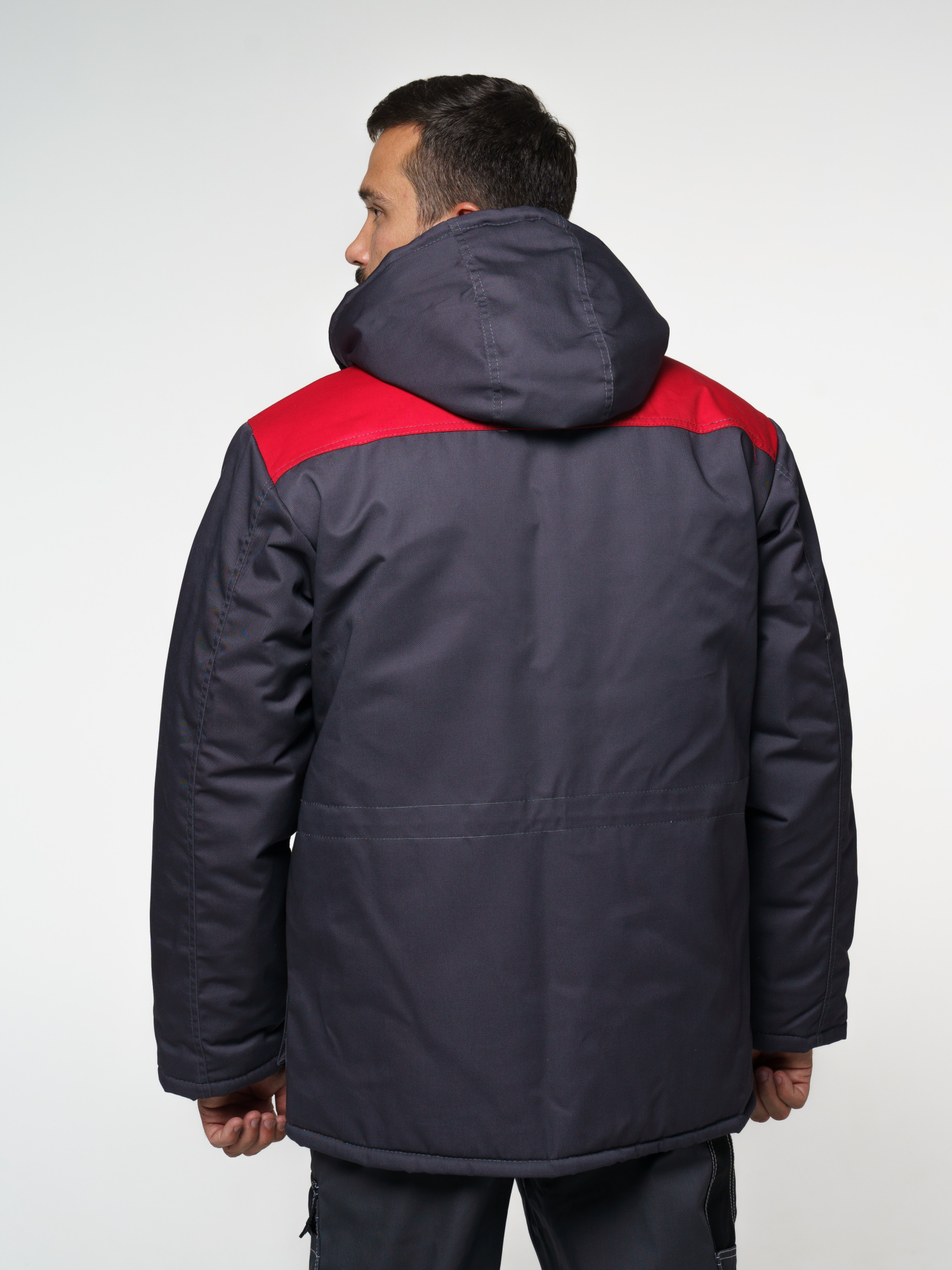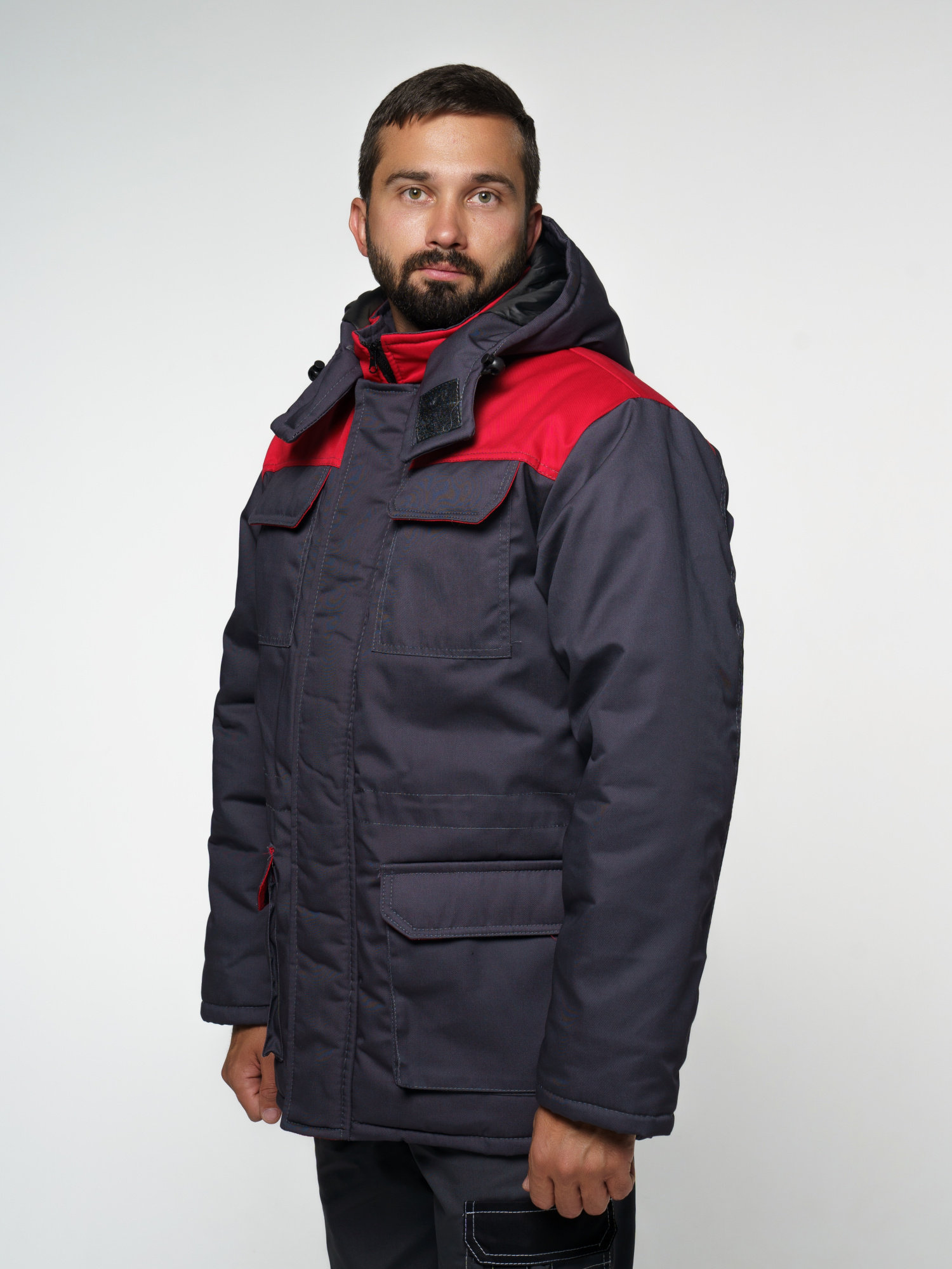 Куртка "БУРАН" утепленная ТВИЛ (т.серый/КРАСНЫЙ) Кур703 (ЧЗ) (120-124/194-200)