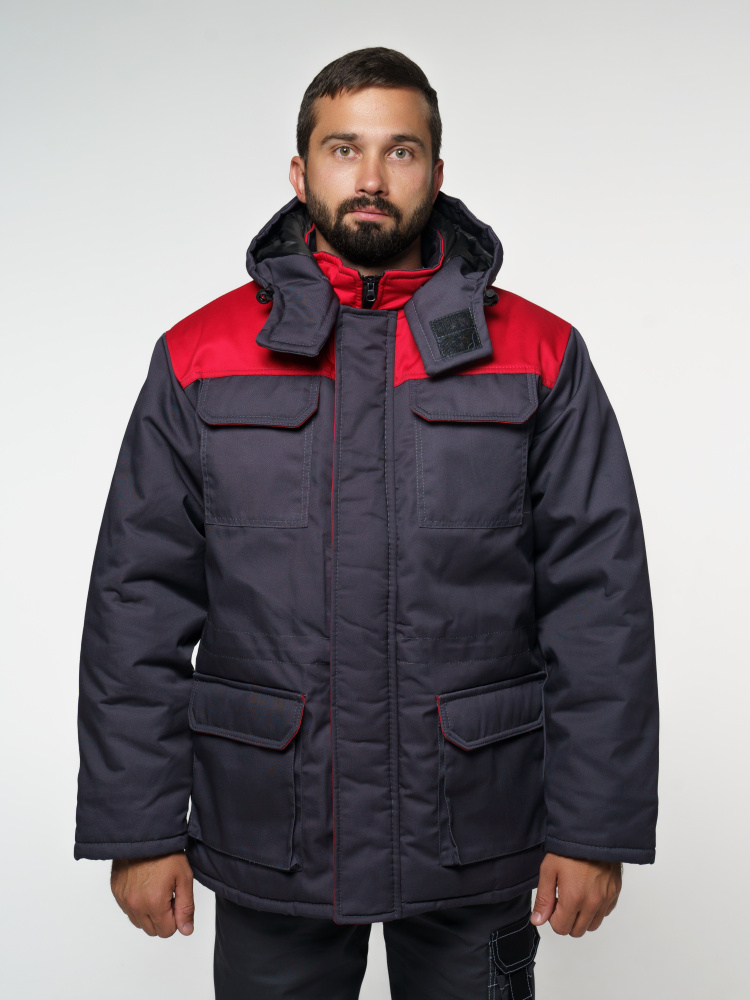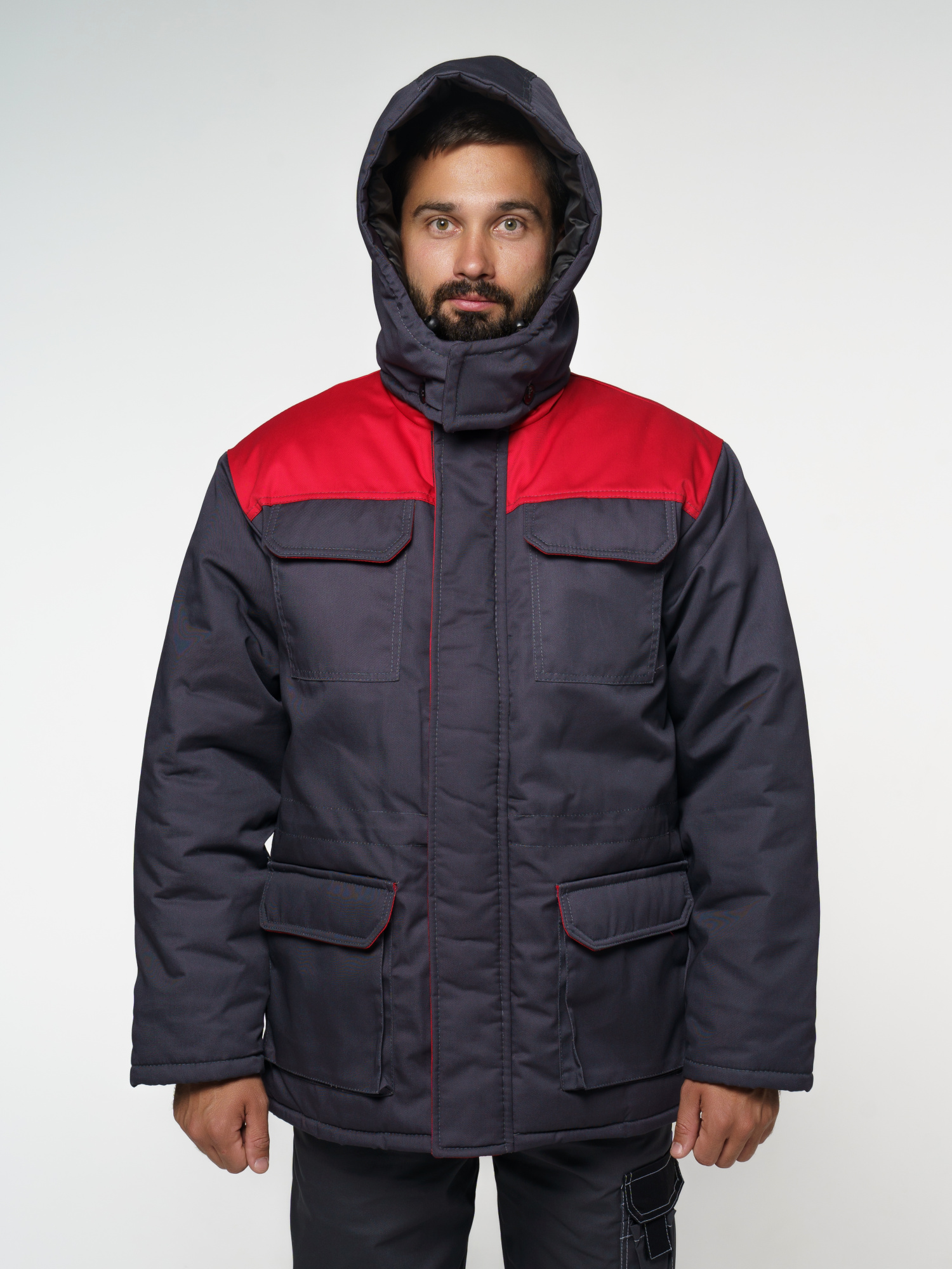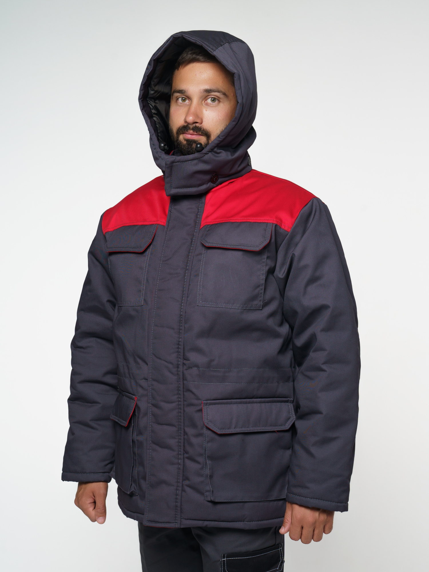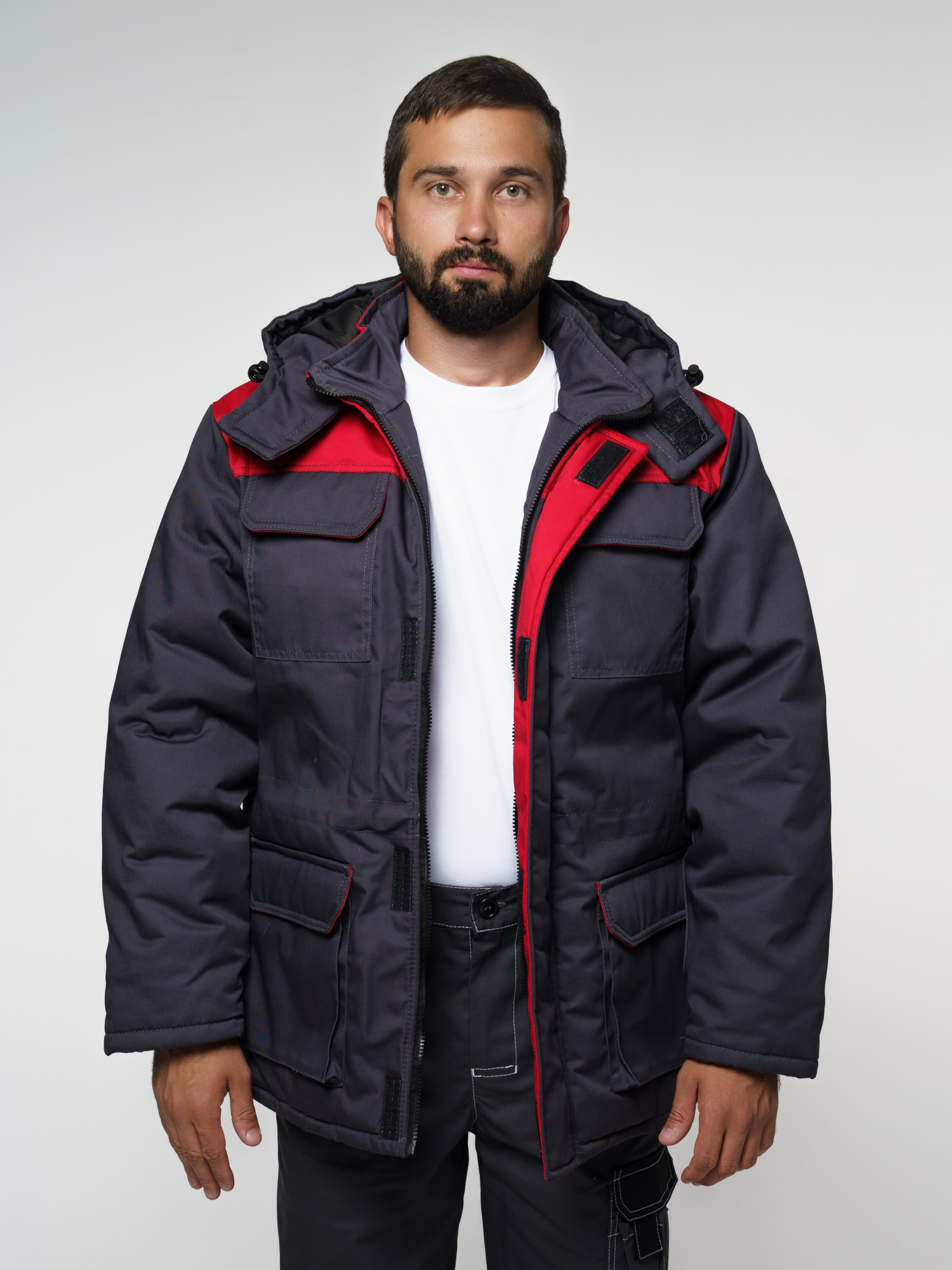 Куртка "БУРАН" утепленная ТВИЛ (т.серый/КРАСНЫЙ) Кур703 (ЧЗ) (104-108/194-200)
