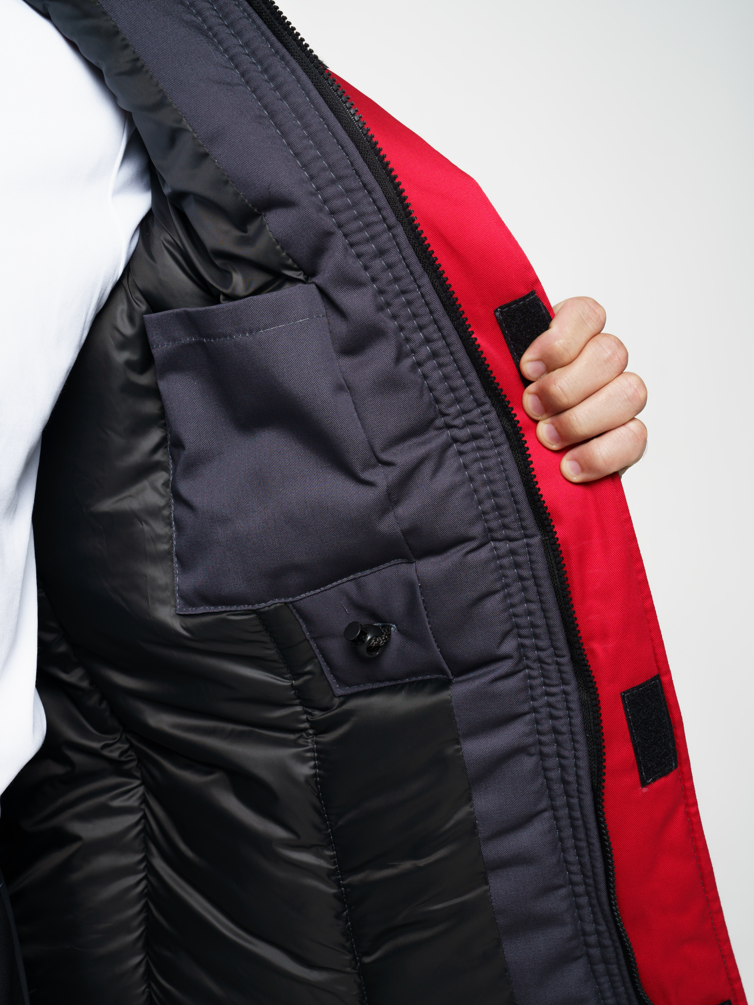 Куртка "БУРАН" утепленная ТВИЛ (т.серый/КРАСНЫЙ) Кур703 (ЧЗ) ( 88-92/182-188)