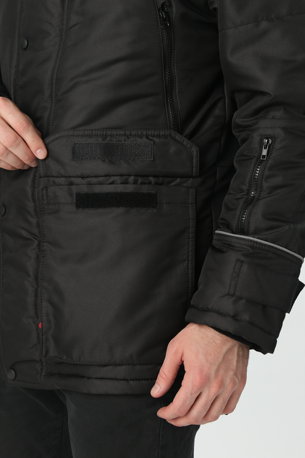 - на левой полочке под ветрозащитной планкой расположен прорезной карман с молнией формата А4