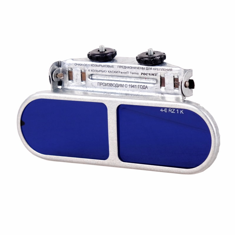 Очки ОК1 имеют скругленное защитное стекло размером 120х37 мм с Г-образным кронштейном.