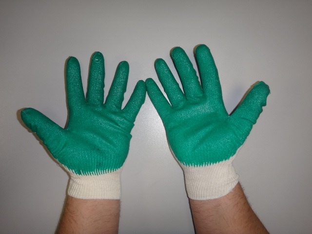 Перчатки х/б с латексным покрытием, зеленые арт. 226