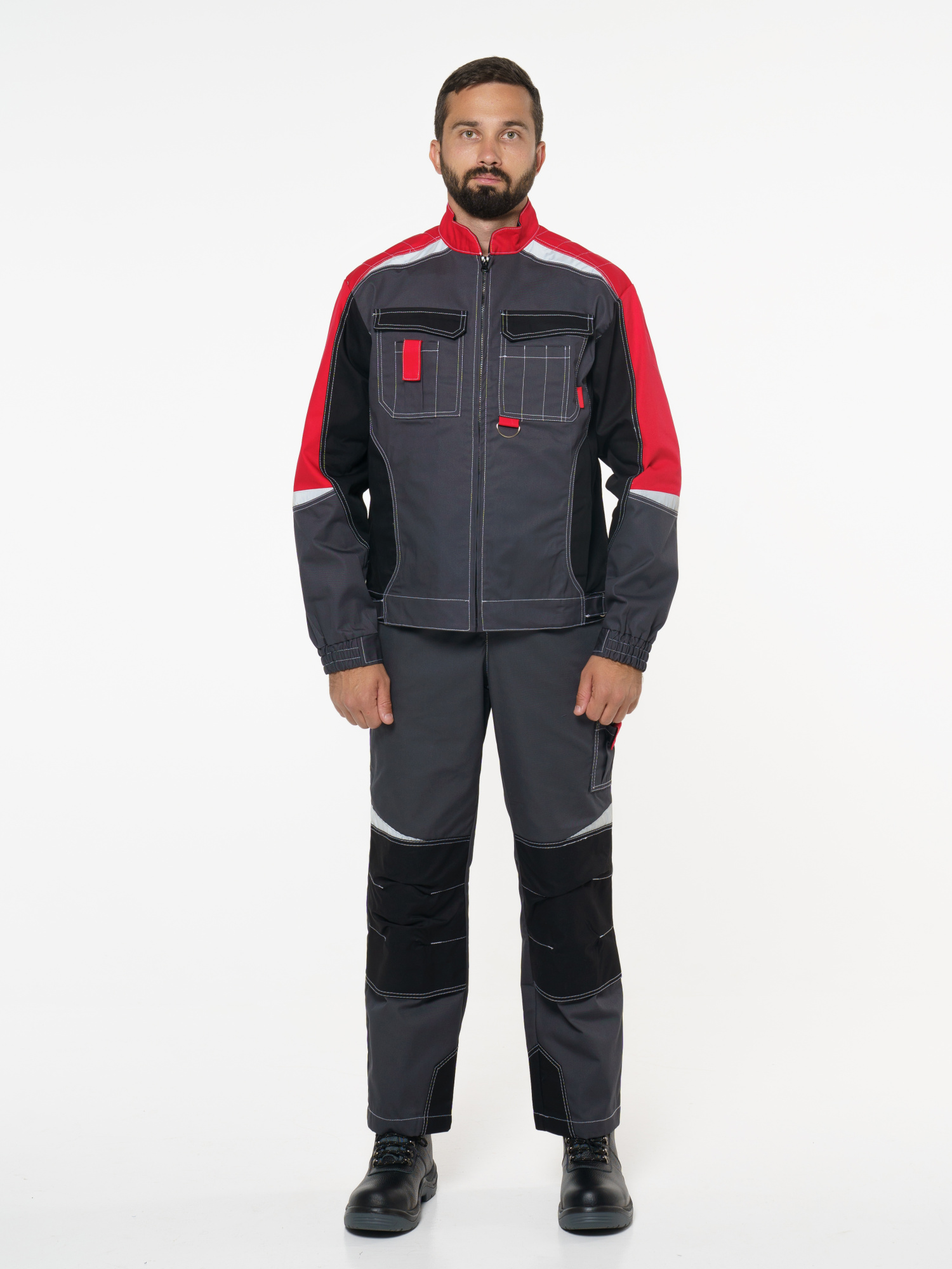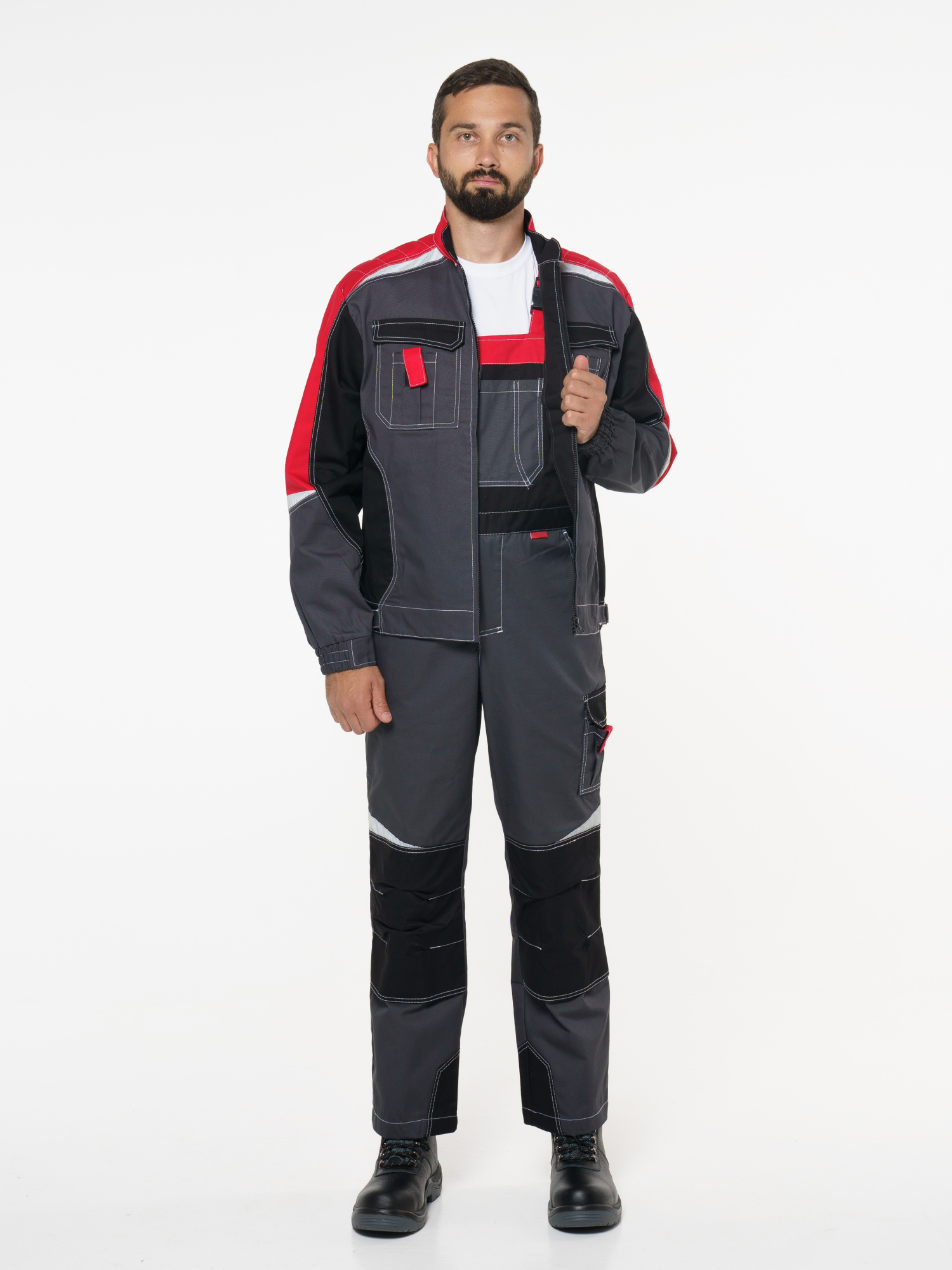 Полукомбинезон "Фаворит-Мега": серый с красн., черн.,СОП Тк. Rodos