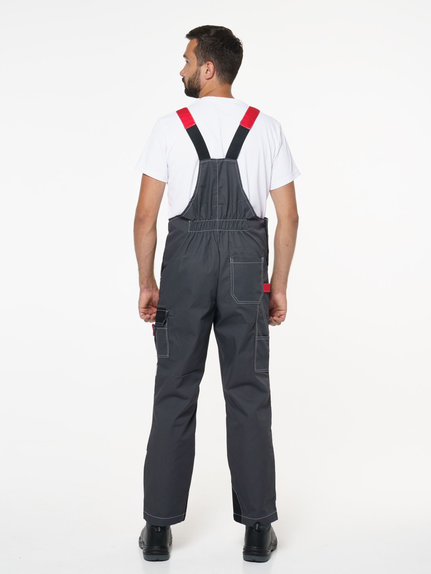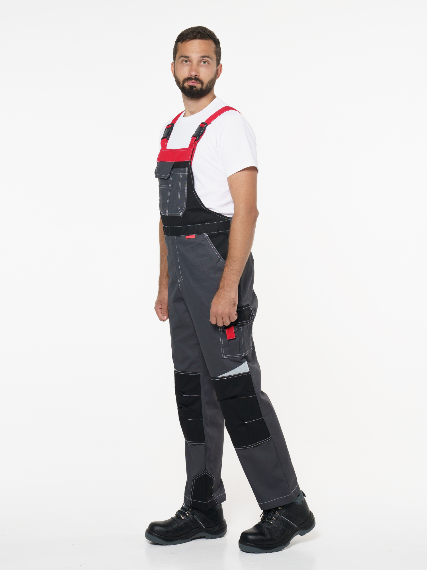 Полукомбинезон с застёжкой гульфика на молнию и застёжкой в боковом шве на пуговицы; с различными многофункциональными карманами; с объемными наколенниками. СОП-50 мм. ГОСТ 12.4.280-2014