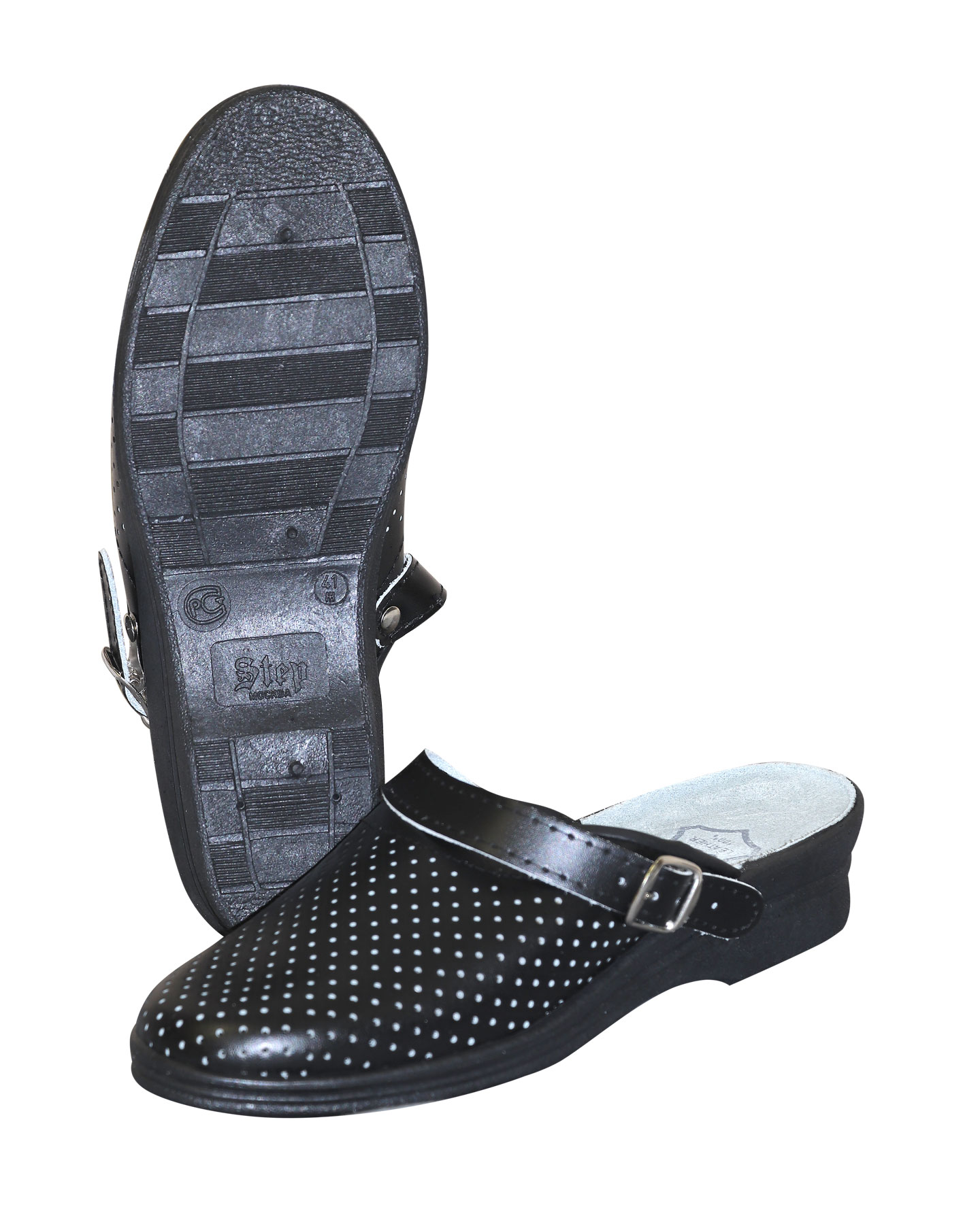 Сабо женские чёрные, кожа, ПВХ, с ремешком Step (35)