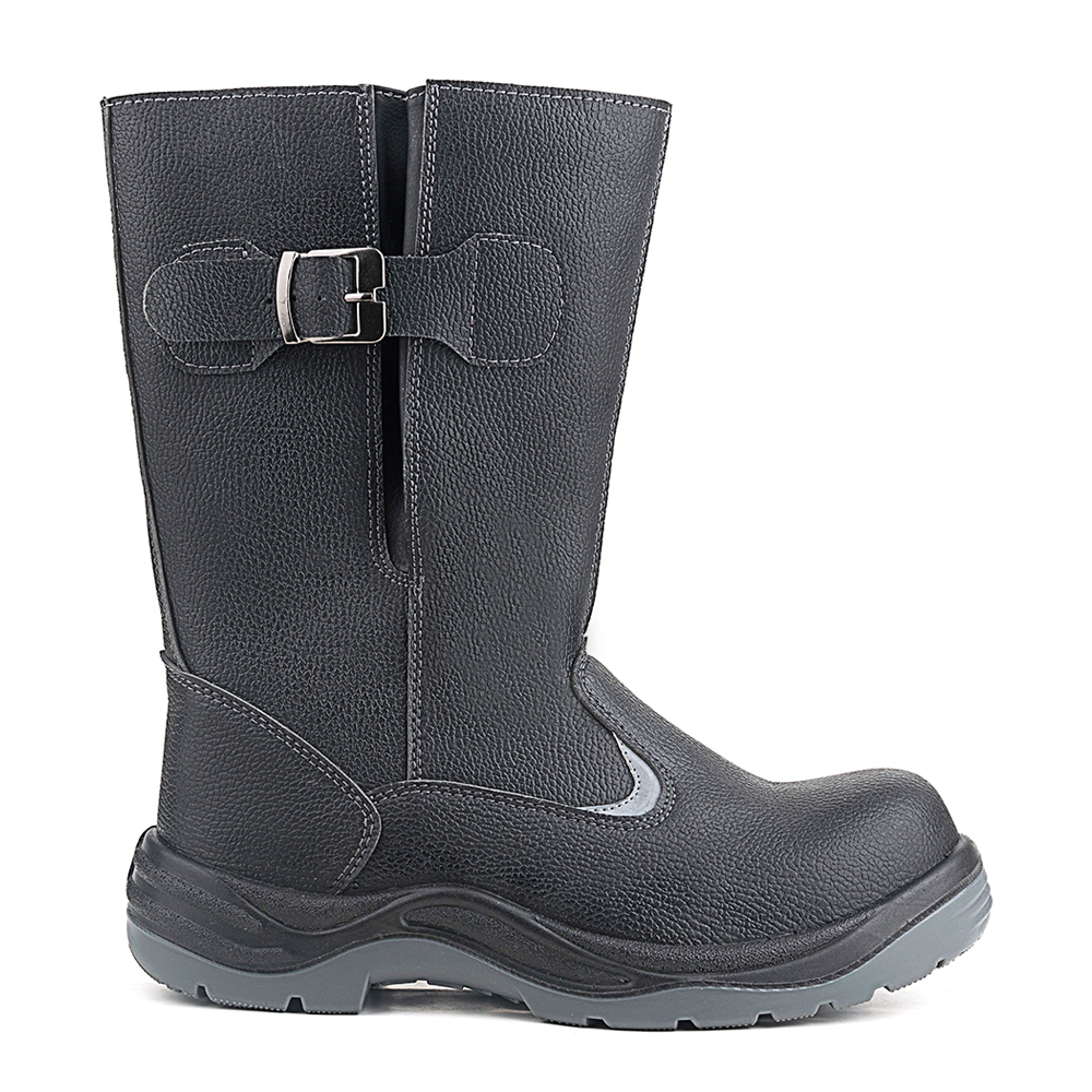 Кожаные сапоги Prosafe серии basic дополнены ремнем с металлической пряжкой для возможности регулировать и комфортно фиксировать ширину голенища. Текстильная сетчатая подкладка создает комфортные условия носки в течении рабочей смены. В модели предусмотрена текстильная съемная стелька. Светоотражающие элементы повышают видимость работников в темное время суток, а также на неосвещенной территории. Подошва- двухслойная, маслобензостойкая, литьевого метода крепления. Промежуточный слой изготовлен из ПУ с внутренней амортизирующей вставкой в пяточной части подошвы, способной гасить нагрузки при ходьбе. Нижний ходовой слой- износостойкий ТПУ. Глубина протектора ходового слоя обеспечивает хорошую сцепляемость с поверхностями и препятствует скольжению за счет рельефа протектора. Металлический подносок обеспечивает защиту пальцев стопы от механических повреждений ударной прочностью до 200Дж.