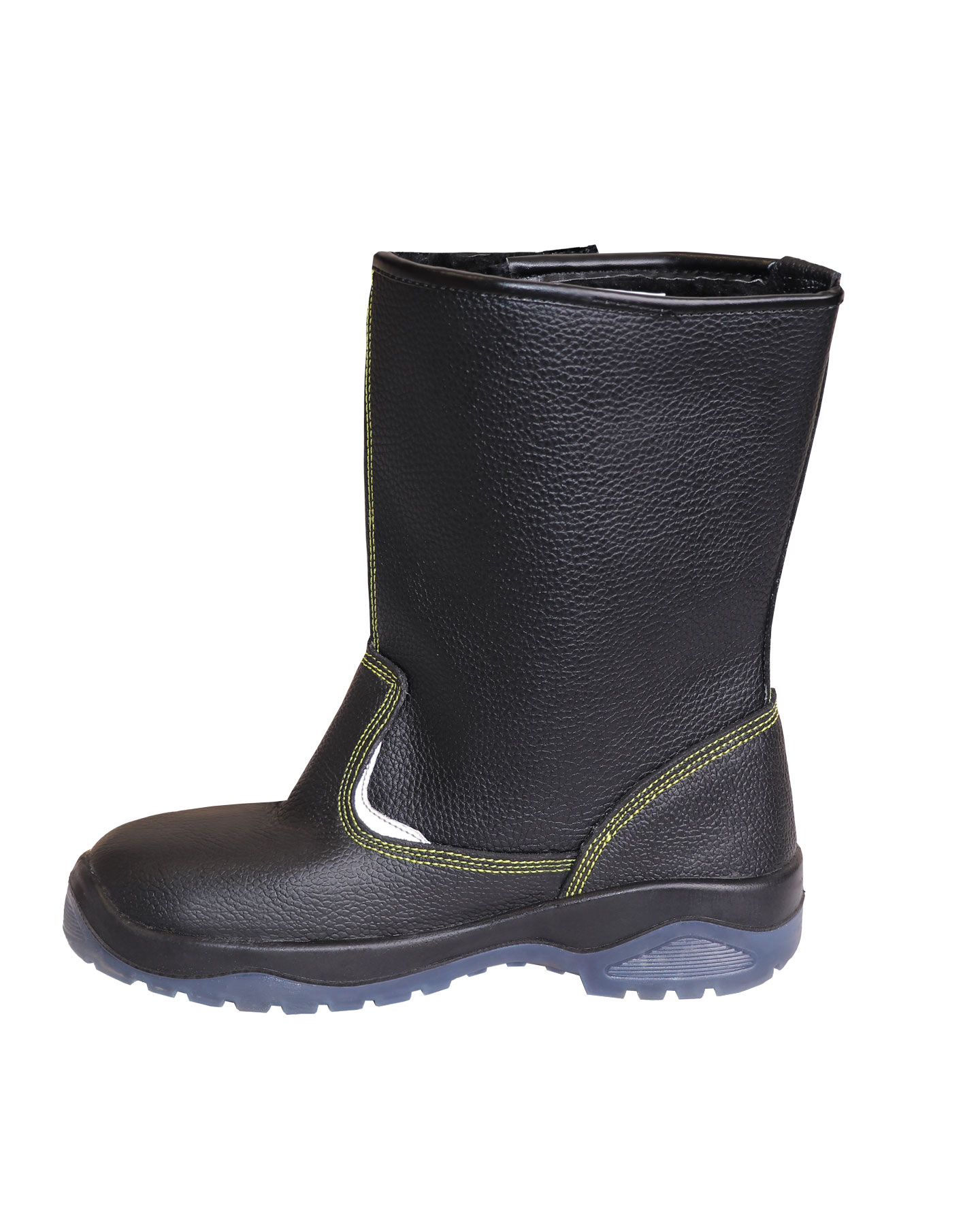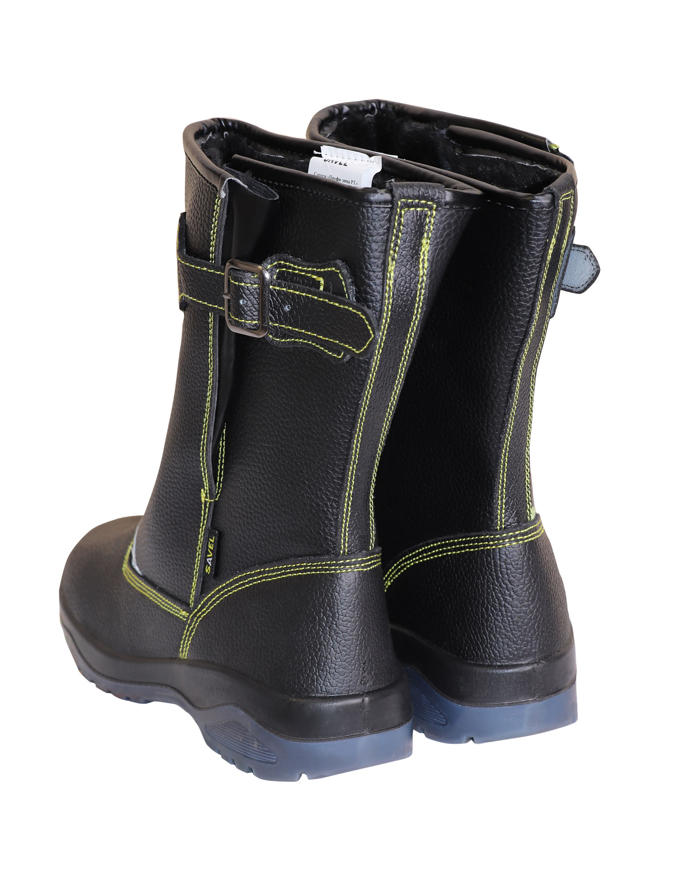 В качестве утеплителя в сапогах серии "SAVEL-Профи" использован искусственный мех. Верх сапога имеет контрастные отделочно-скрепляющие строчки жёлтого цвета.