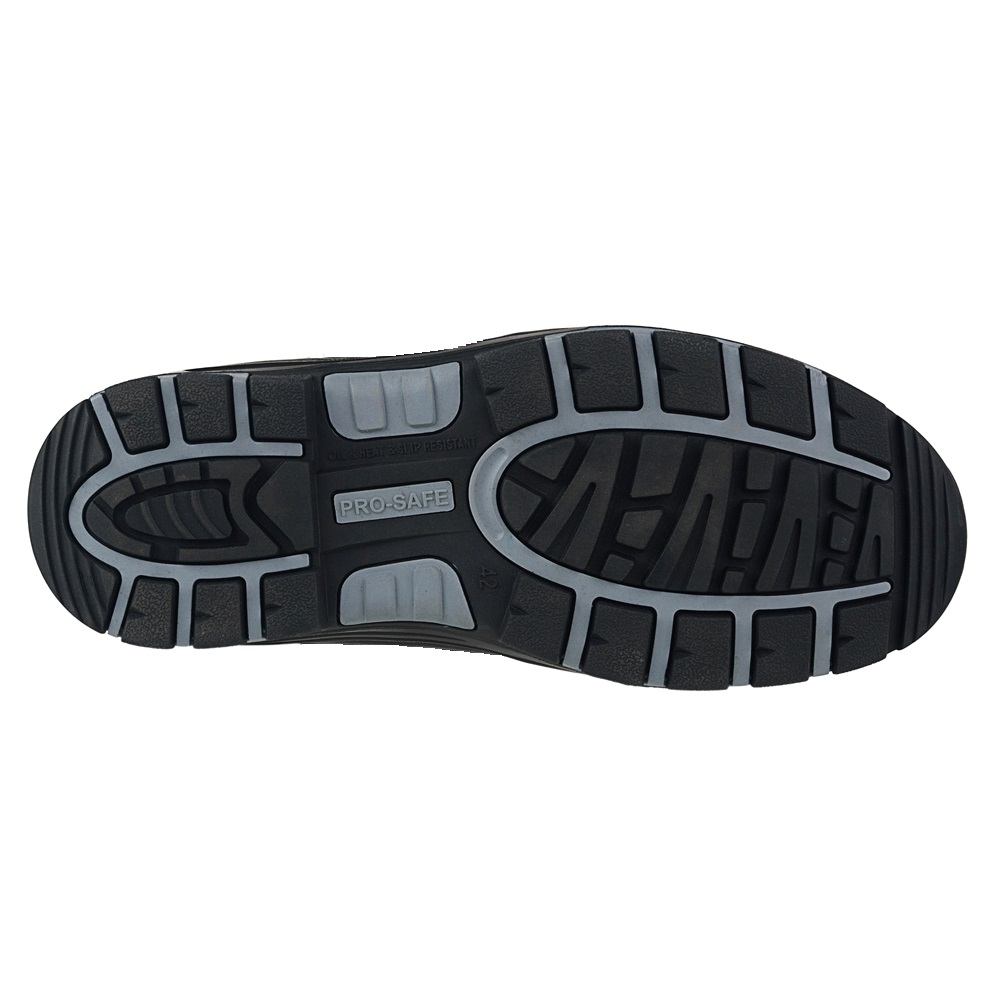 Сапоги Prosafe серии profi изготовлены из натуральной кожи в комбинации с водоотталкивающим текстильным голенищем 900D, светоотражающимим элементами и защитной накладкой в пяточной части на подкладке–дуплекс, состоящей из шерстина с содержанием натуральной овечьей шерсти- 50% и плотностью 900 гр., дублированного с фольгированным полотном, позволяющим сохранить тепло внутри сапога длительное время. В модели предусмотрена вкладная стелька из шерстина. Голенище регулируется и фиксируется на ноге с помощью двух ремней с металлическими пряжками. Подошва- двухслойная, маслобензостойкая, литьевого метода крепления. Промежуточный слой изготовлен из ПУ с внутренней амортизирующей вставкой в пяточной части подошвы, способной гасить ударные нагрузки при ходьбе. Ходовой нижний слой изготовлен из износостойкого, термостойкого нитрила, который способен защитить стопу от кратковременного контакта подошвы с нагретой поверхностью до 300°С. Композитный подносок ударной прочностью 200Дж обеспечивает защиту пальцев стопы.