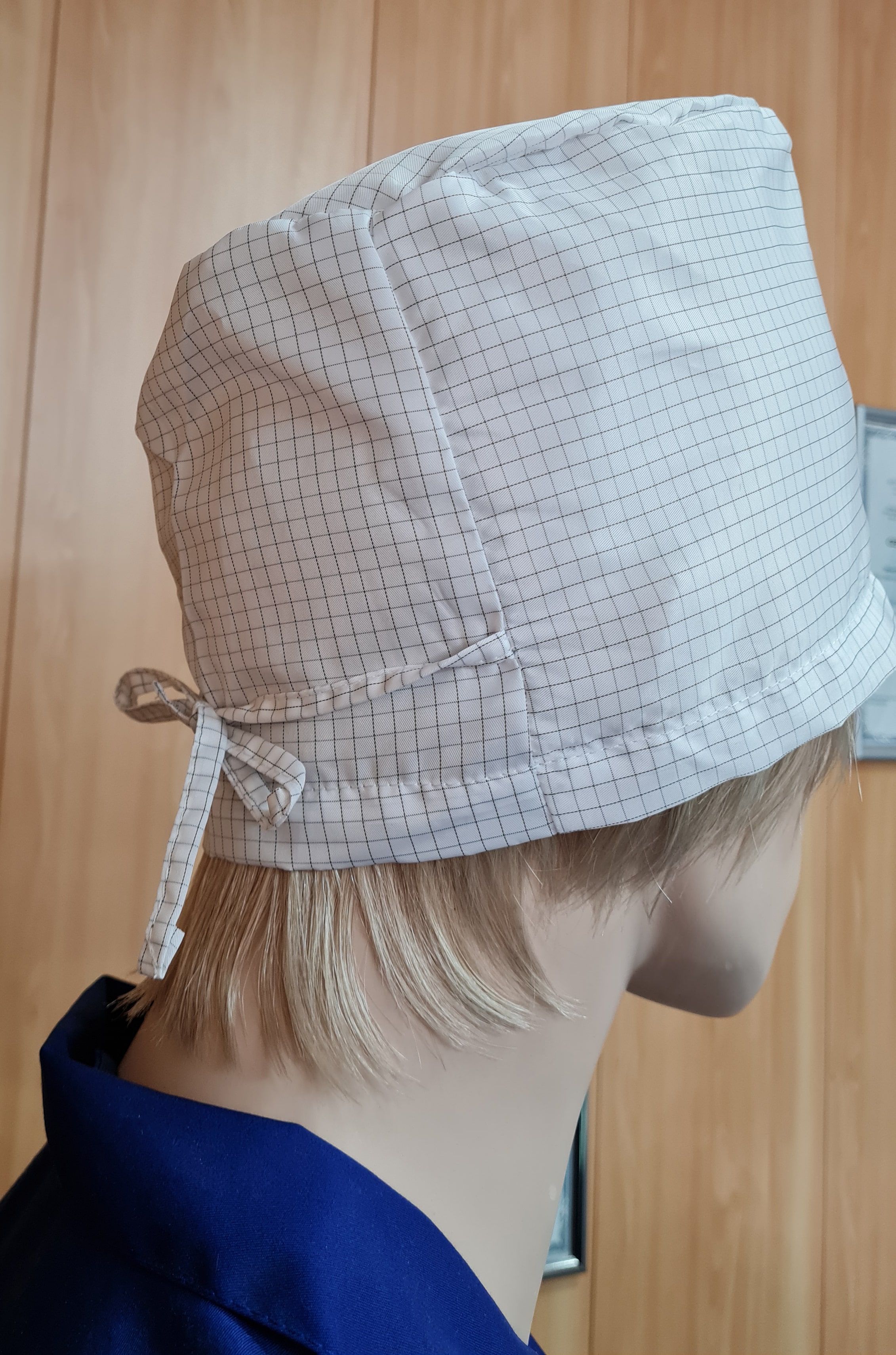 Шнурки для регулировки шапочки на голове из того же материала, что и само изделие, что обеспечивает не попадание волос на рабочий стол, микросхемы и т.п.