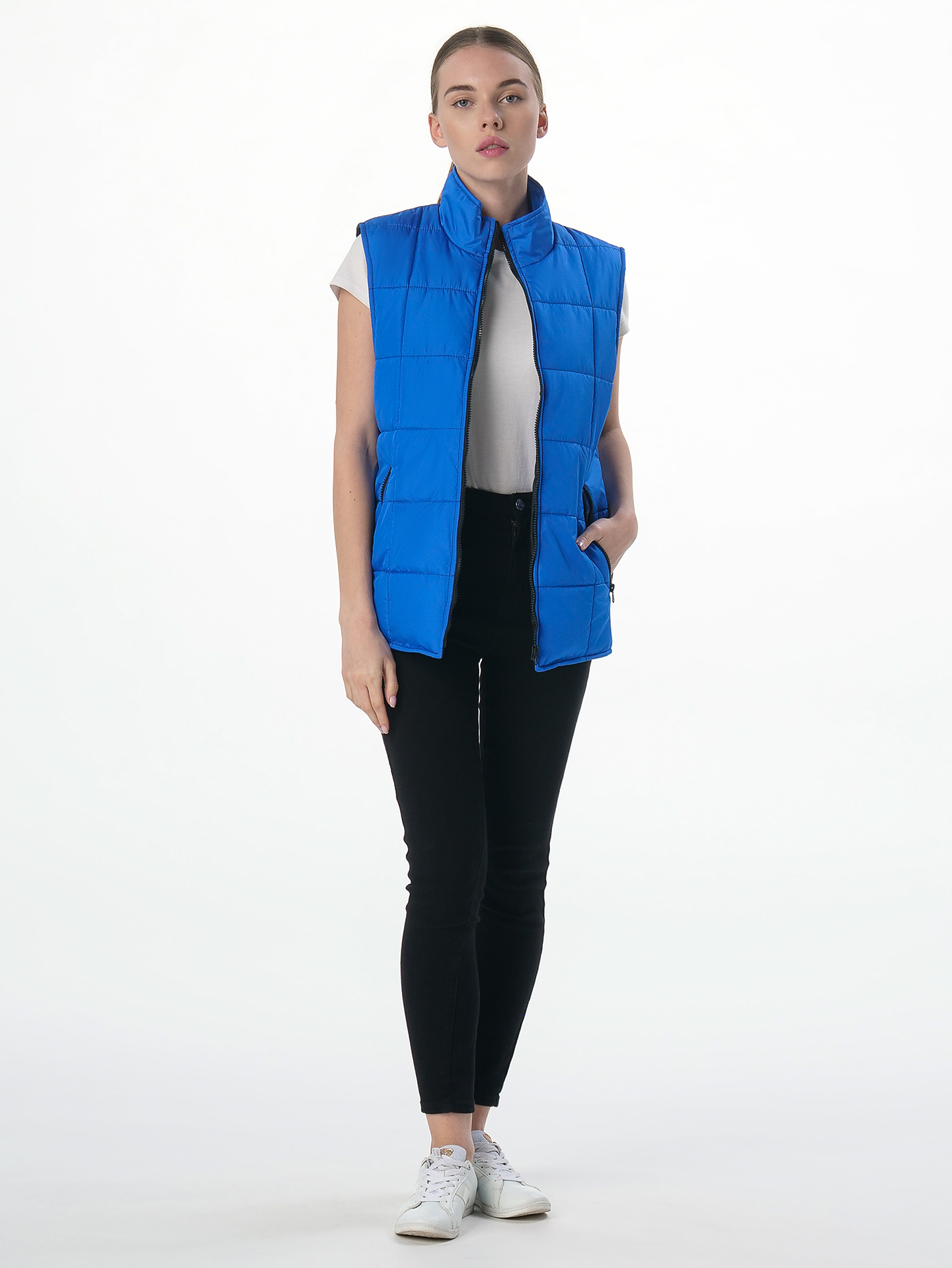 Жилет утепленный «Офис» выполнен в классическом фасоне из высококачественных материалов. Стеганый жилет прямого кроя подходит как мужчинам, так и женщинам, прекрасно садится по фигуре, выступая отличным дополнением повседневных и рабочих образов. Благодаря плотной ткани с влагоотталкивающей пропиткой жилетка надежно защищает от осадков и отличается износостойкостью. Утеплитель синтепон помогает сохранить тепло, а воротник-стойка закрывает шею от ветра. Безрукавка дополняется удобными боковыми карманами на молнии, где можно хранить необходимые мелочи или записи. Утепленный жилет отлично сочетается с брюками, джинсами, толстовками, футболками и другой одеждой, обеспечивая комфорт и тепло во время работы, прогулок, путешествий и активного отдыха. Для указания ФИО присутствует этикетка с изнаночной стороны.
